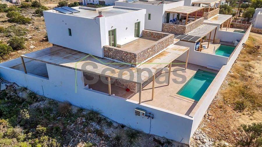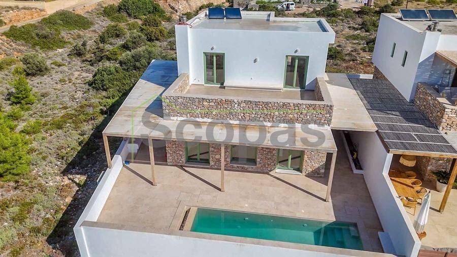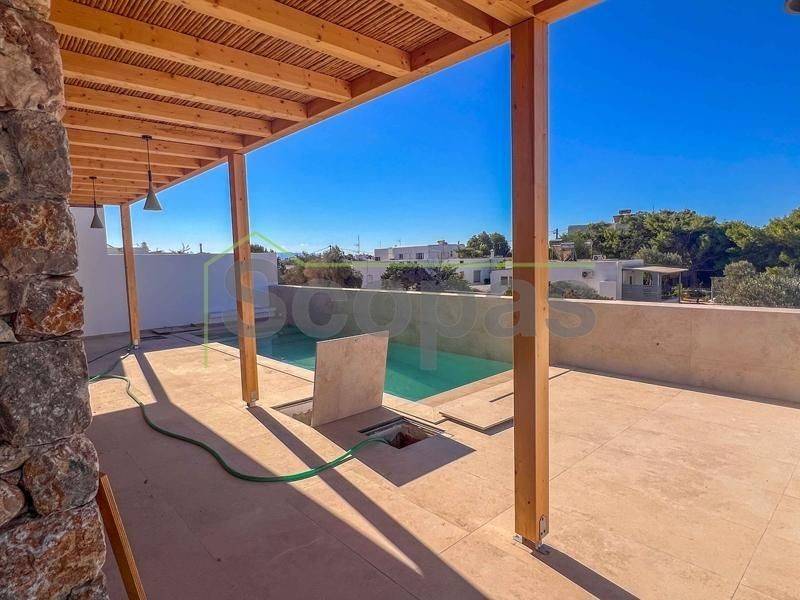House for sale by SCOPAS REAL ESTATE and CONSTRUCTION. Located just a few steps from the beach and the center of Aliki, this newly built 220 sq.m. fully furnished villa sits on a 298 sq.m. plot and stands out for its modern architecture, premium construction quality and panoramic sea views from the upper level overlooking the nearby islands. With an ideal southwest orientation, the villa enjoys bright interiors throughout the day and stunning sunset colors. Layout Ground Floor – 104 sq.m. Open-plan living room – dining area – kitchen 1 bedroom Bathroom 5 sq.m. storage room Direct access to the 25 sq.m. private pool and spacious verandas First Floor – 68 sq.m. 2 bedrooms with en suite bathrooms Private balconies with sea views Large hallway with built-in wardrobe Basement – 51 sq.m. WC Storage room / potential additional bedroom Engine room Features & Amenities Underfloor heating with heat pump VRV air-conditioning system Outdoor terraces totaling 170 sq.m. 54 m³ water tank Access via dirt road for the last few meters The villa is delivered fully furnished, ready for immediate use. Ideal for Tourist Investment & Holiday Living Thanks to its premium location near the beach, local restaurants and village amenities, this property is perfect both for high-yield tourist rental investment and as a luxury holiday home for personal enjoyment. Distances 400 m to the beach 4.5 km to the airport 12.5 km to the port The Surrounding Area – Aliki, Paros Aliki is a charming seaside village known for its crystal-clear beaches, peaceful atmosphere and excellent dining options. It offers a perfect blend of authentic island character and modern convenience, while providing easy access to the airport and the beautiful southern coastline of Paros. A location that uniquely combines beauty, comfort and investment potential. - The location marker on the map does not correspond to the exact address of the property. - In compliance with Law N.4072/2012 - Official Gazette 86/A/11-4-2012, a valid identity card or VAT number is required when referencing the property.
