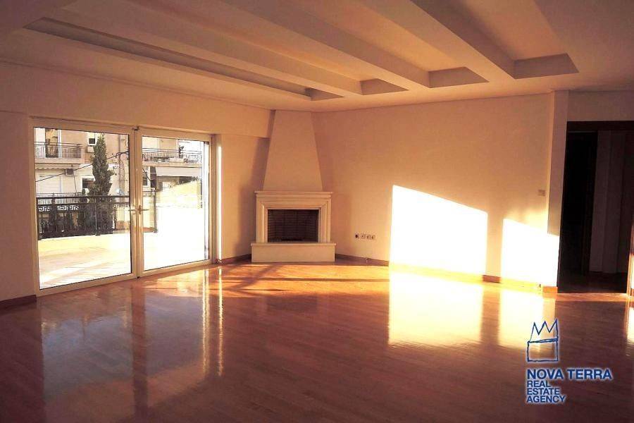 GLYFADA - PYRNARI, Apartment,, Rental, 150 sq.m, year built 2013, 3 rooms, 1st, Various Characteristics: Balcony, Bath (2), Escalator, Fire Place, Garden, Store Room, Swimming Pool, Flooring: Wooden floor, Heating: Autonomous Heat oil, From Side to Side, Luxury, Newly built, Satellite TV, Screens, Security Alarm, Security Door, In perfect condition: Satellite dish: Parking area: Garage. property ID: 34898, www.nova-terra.gr