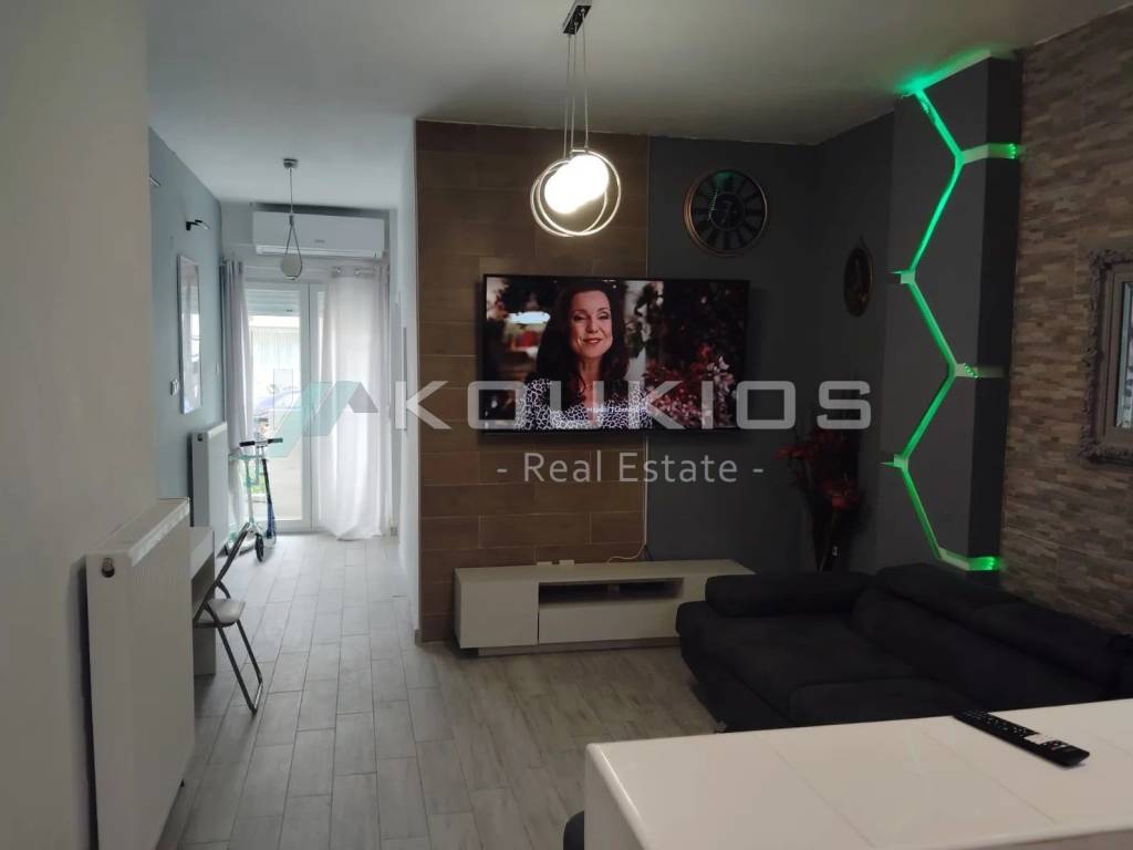 Kalamaria, a luxurious apartment for rent with a total area of ​​85 sq m on the mezzanine floor of a well-maintained building, frontage, bright, airy with balconies. For heating needs, it has an individual natural gas boiler and air conditioners. The property is fully furnished and equipped with electrical appliances. -Code: ST1307 -Price: €1,100 Consists of 2 bedrooms, 1 living room, kitchen and 1 bathroom • Natural gas heating • Synthetic frames - double glazing • Air conditioning • Security door • Tiled floor • Furnished • Electrical appliances • Balcony • Video door entry • External cameras An ideal choice for families, workers and students, it is located just 4 minutes from the metro stop, next to restaurants, public transport, supermarkets and pharmacies. **In order to suggest the property, it is necessary to show your identity or your tax number and record them in the suggestion order, according to Law 4072/11-4-2012 Official Gazette 86 A.**