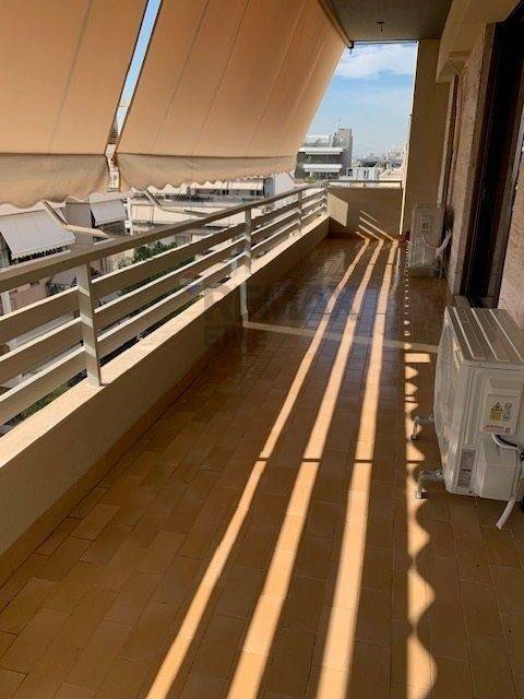 N. Smyrni: For rent on Flavianon Street, a bright, renovated, 5th floor penthouse apartment of 148 sq m in a very central location with a beautiful view. It consists of a large living room with fireplace and wooden floor, a master bedroom and two more bedrooms with large wardrobes, each with wooden floors, renovated independent kitchen with new cabinets. It has two storage rooms inside the apartment, solar water heater, new aluminum frames with energy-saving windows and screens, security door, autonomous heating with heat pumps. It is located 100m from the tram station. Monthly rent €1,200 (negotiable) (K3)