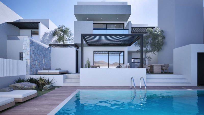 Property Code: 1-120 - House FOR SALE in Vrachasi Sisi for € 650.000 . This 128.00 sq. m. House consists of 2 levels and features 3 Bedrooms, Livingroom, Kitchen, 3 bathrooms and a WC. The property also boasts Heating system: Individual - Petrol, tiled floor, unobstructed view, Window frames: Aluminium, Security door, parking, garden, swimming pool, A/C, alarm system, insect screens, solar-powered water heater, internal staircase, balconies: 15 sqm. The building was constructed in 2026 . Building Energy Rating: A+ Distance from sea 50 meters,