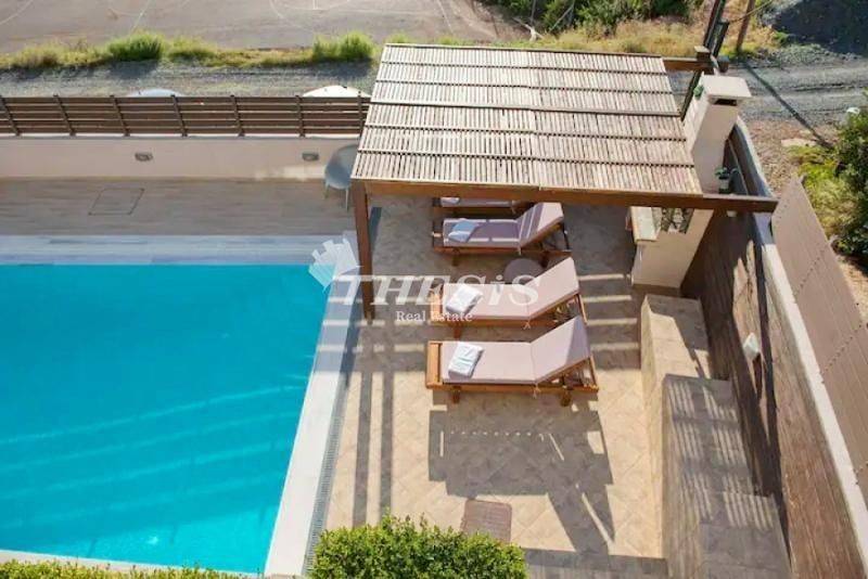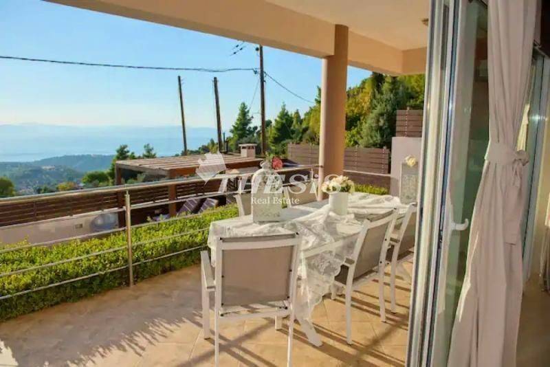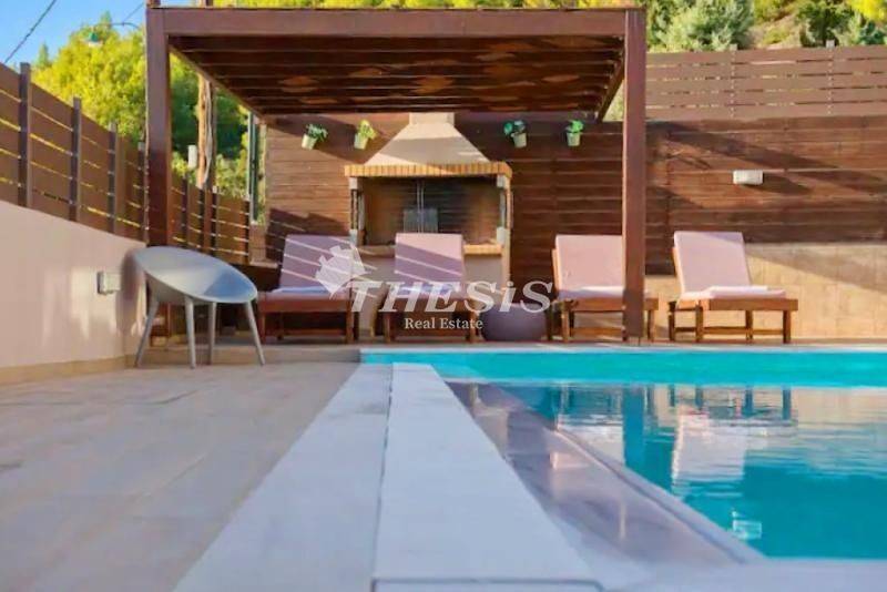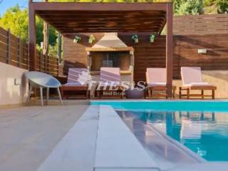 Property code: 833776 - Within the settlement of Nerotrivia, the "Balcony of Evia", 29km from Chalkida, is housed a luxurious villa, total area 214 sq.m., built in 2010 on a high quality plot of 500 sq.m., which has details. 2 levels with 2 independent houses, 86 sq.m. (ground floor) and 128 sq.m. (1st floor) with independent entrances. Comfortable accommodation in Evia with an emphasis on privacy, which is complemented by the unique view of the Euboean sea, uniquely combining mountain-sea, luxury-nature, relaxation-tranquility. Private 32m pool and terrace for endless, carefree hours of relaxation in the sun. A special feature of the villa are the large windows in the living rooms that allow views of the sea, the property's swimming pool and the sunset. A short bike ride from the village shopping center, the nearby mountain or the sea. Just 5km from the most beautiful organized beaches of Euboikos, Dafni and Politiki, known for their clear blue-green waters. The green of the mountain embraces the sea, creating wonderful images and colors on land and sea. 1km from the tavern at the end of Dafni beach and the other famous taverns of the village. Distance from Athens 99km and 25km from Chalkida - Price: 570.000€