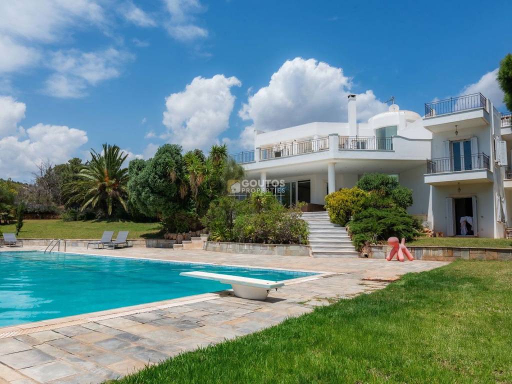 In Lagonisi, in the area of Kalivia Thorikou, an impressive high-specification villa of 500 sq.m. is offered for sale, set on an exceptional 6,500 sq.m. plot that ensures complete privacy and open, unobstructed sea views. Developed across three levels, the residence stands out as a distinctive construction, featuring spacious and functional interiors ideal for comfortable living and entertaining. The villa includes two expansive living rooms with fireplaces, two fully equipped kitchens, five bedrooms—one of which is a master suite with a walk-in wardrobe—and five bathrooms, along with multiple auxiliary spaces that enhance practicality and convenience. Large openings and bright interiors maximize natural light while highlighting the uninterrupted sea views. The outdoor area is beautifully landscaped with lush planting, creating a private and serene environment, while the swimming pool and basketball court add a dynamic lifestyle element, ideal for both relaxation and social gatherings. Located just 1,500 meters from the sea, the property perfectly balances tranquility with close proximity to the coastline, making it an excellent residential choice on the Athenian Riviera. For more information: Goutos Properties, +30 210 971 5711, sales@goutos.gr, www.goutos.gr.