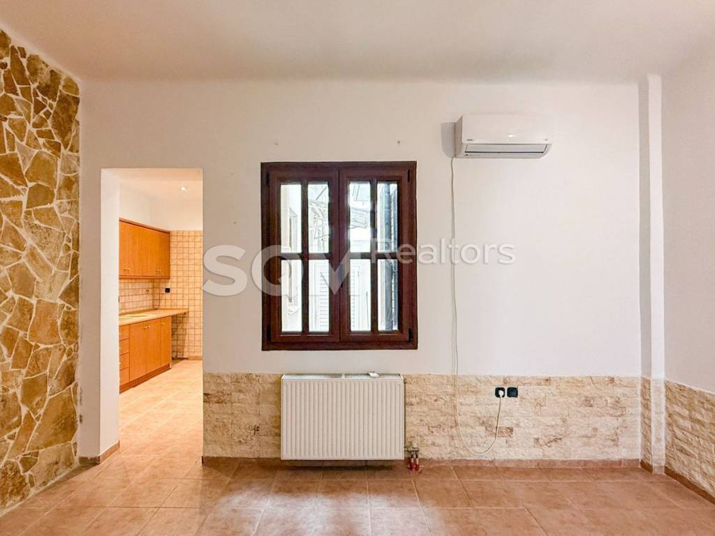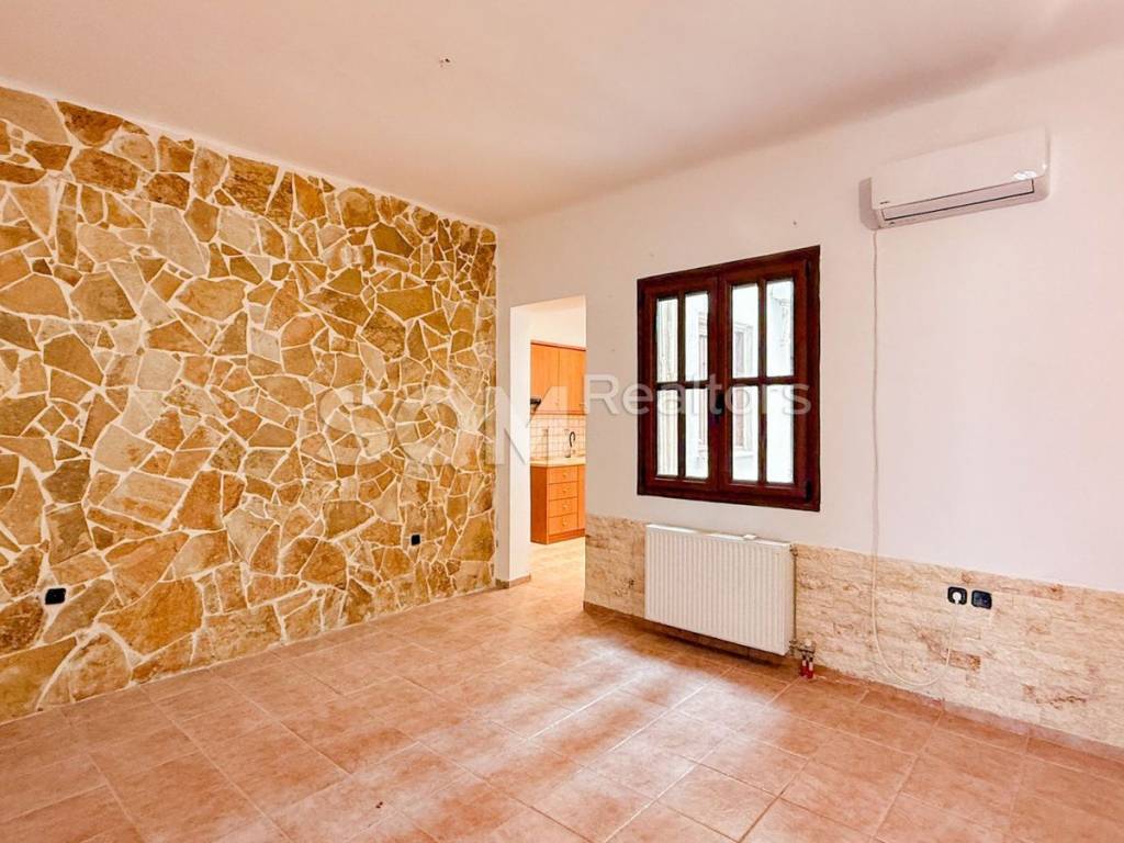 Ano Kaisariani, a ground floor apartment of 50sqm is available for rent in a building constructed in the early 1970s. If you want quietness, a clean atmosphere due to the immediate proximity to the forest and its unique microclimate, and you don't mind being far from public transport, then this is definitely an excellent choice. Upon arriving, you immediately feel far from the city. Kaisariani at that altitude is clearly a village. The property is on the ground floor with its own yard and its own entrance, thus no shared expenses. Of course, precisely because of the slope from the level of the road, to open your door you go down 4 steps. Before we take you to see it, we will guide you first via Google Maps so that you know exactly what we mean. Entering inside, you follow a small hallway and a few steps further on your left you will find the bedroom which looks out to the front. Straight ahead is the living room with a window to the yard, and a bit further in are the kitchen and bathroom, both with windows to the yard. From the kitchen, you have access to the yard where you will find a small storage space as well as the oil boiler along with the tank for your heating. Overall, it is a very nice apartment that will definitely suit you if your requirements do not include traveling by public transport, meaning you have your own means of transport and need privacy. Here you will find it, but it requires some walking. In brief: Independent entrance, security door, living room, kitchen, bathroom, and bedroom with tiles, aluminum frames, air conditioning, individual oil heating, very good condition, renovated with five-year depreciation, airy with an eastern orientation, no shared expenses, internal yard, pets allowed. Energy Class Z Price: €450. (the fee equals one rent plus 24% VAT)