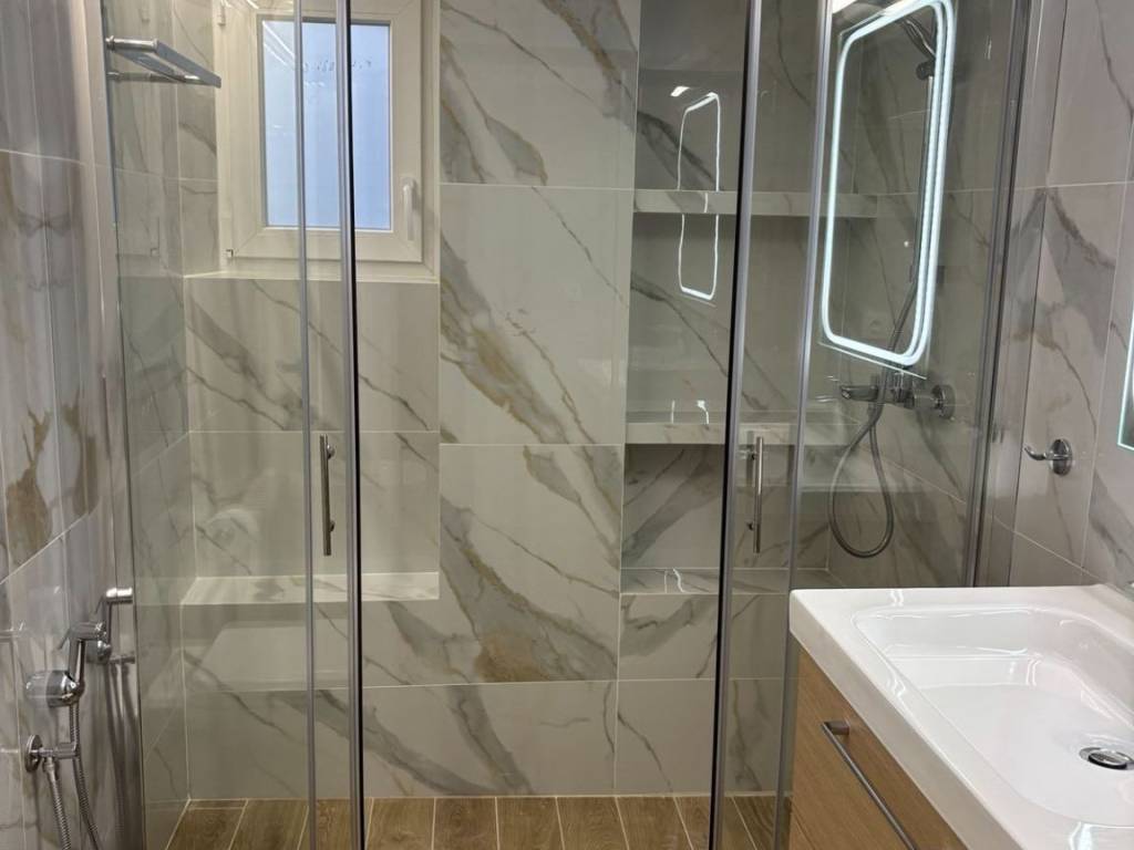 Ενοικιάζεται φωτεινό-διαμπερές, προσόψεως, πλήρως ανακαινισμένο (πριν λίγες μέρες) οροφοδιαμέρισμα πρώτου ορόφου, 120τμ. με 3 (δυνατότητα και για 4) υπνοδωμάτια, κουζίνα, σαλόνι, μπάνιο, wc, με ατομική θέρμανση φυσικού αερίου, με τύπο δαπέδων μάρμαρο και ξύλο, διπλούς υαλοπίνακες, κουφώματα αλουμινίου, πόρτα ασφαλείας, ασανσέρ, τέντες, σίτες, κοινόχρηστο κήπο. Τα κοινόχρηατα ανέρχονται στα περίπου 50 Ευρώ το μήνα. Το διαμέρισμα βρίσκεται πολύ κοντά σε στάσεις τραμ και λεωφορείων, σε σουπερμάρκετ, καφέ, εστιατόρια, ΤΙΜΗ ΕΝΟΙΚΙΟΥ: 1200€