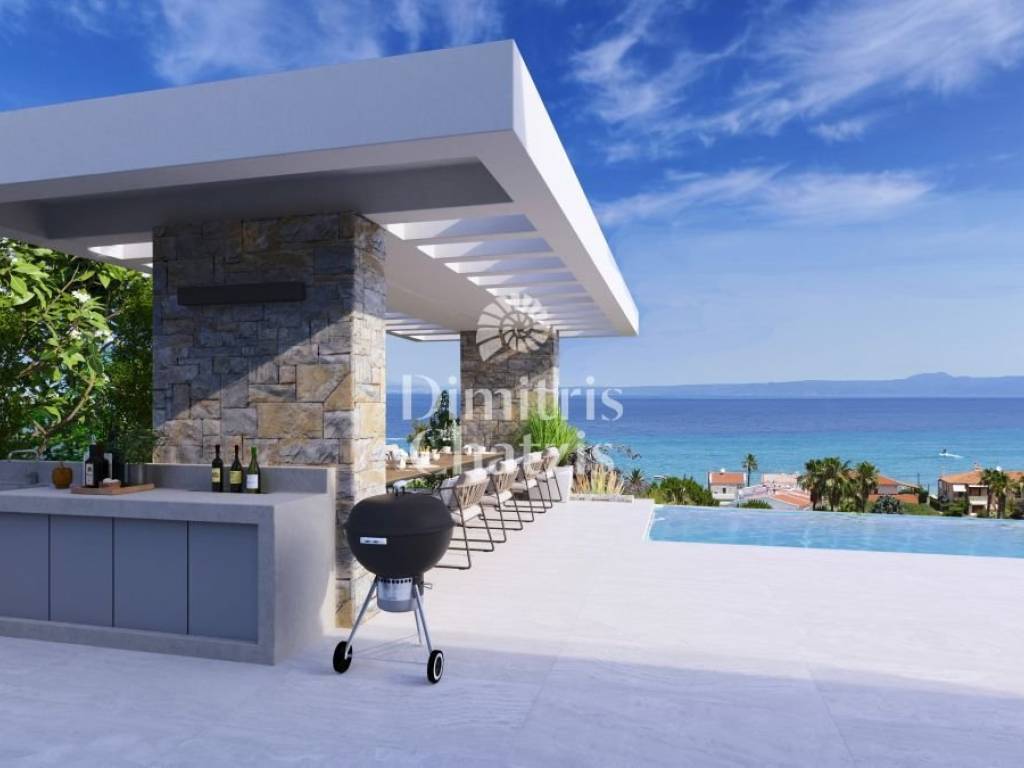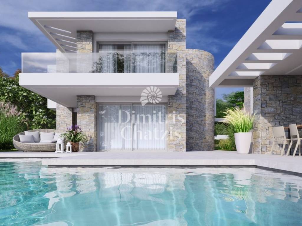Located in Pefkochori, Kassandra, Halkidiki, in a prime location with panoramic sea view, this exclusive complex consists of luxury villas, each featuring a private swimming pool and modern design. It is an ideal choice for both private residence and high-yield investment, while each villa is also available for individual sale. A true luxury opportunity that meets the demands of the modern real estate market. The villas are developed over three levels and include on the ground floor a spacious living area, dining area, fully equipped kitchen, and a WC. On the first floor, there is a master bedroom with an en-suite bathroom, an additional double bedroom, and one more bathroom, all with access to a large terrace offering unobstructed views. The basement level features two comfortable bedrooms, one bathroom, and a storage room, providing extra functionality and comfort for guests. The sale price includes modern features such as central heating infrastructure with the option for an inverter heat pump, air conditioning, solar water heater, fully equipped Italian kitchen, BBQ, parking spaces, satellite TV, security alarm system, and EV charging infrastructure. This is a premium investment opportunity combining luxury, comfort, and a unique location, offering strong potential for high returns through short-term rental or tourist exploitation in one of the most popular destinations in Halkidiki.