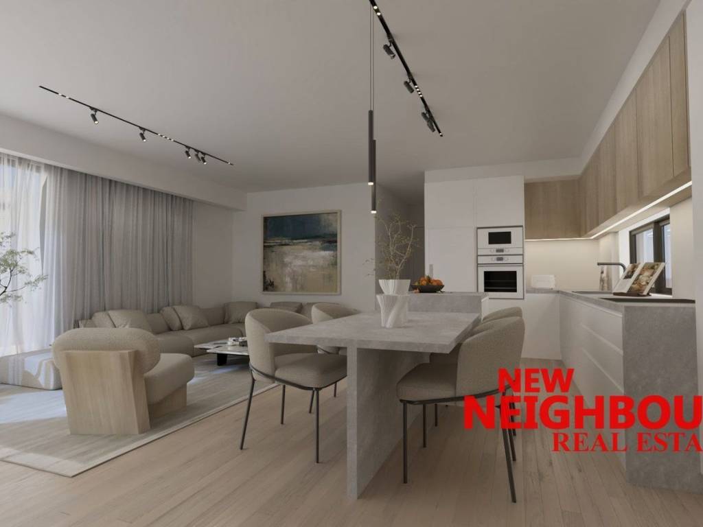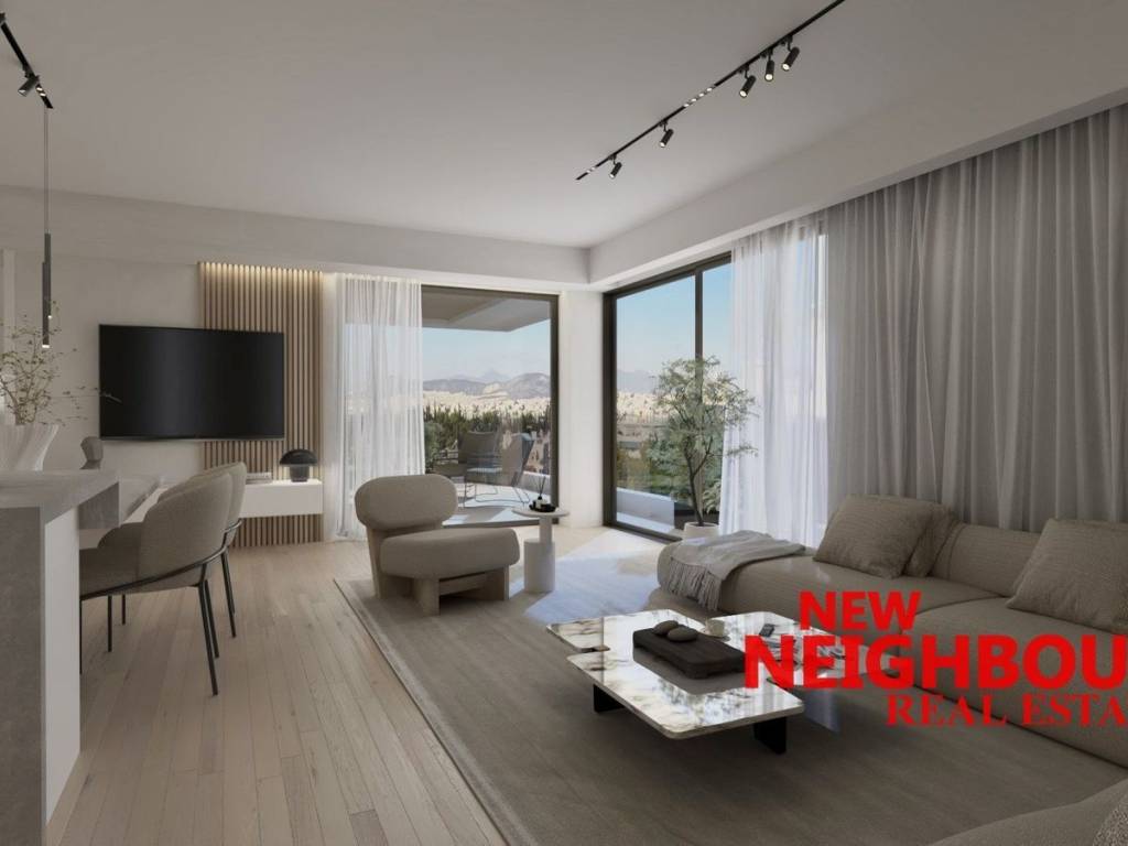 For sale under construction apartment of 91 sq.m. in Melissia, 3nd floor, ready for delivery end of '26. It has a spacious living room with open kitchen, 2 bedrooms and 2 bathrooms. It has underfloor heating with individual natural gas boiler, energy fireplace, pre-installation of air conditioning, electric water heater, energy-efficient windows with thermal break while the entire building is surrounded by a thermal facade and is energy class A +. Finally, it has a parking space in the basement and a storage room. It is a house of minimal aesthetics and high quality construction with an exemplary layout. It is located in a quiet neighborhood very close to the market. Price 445,000 euros Code: 22038