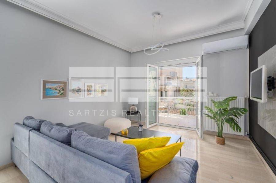 Glyfada, Apartment For Rent, 80 sq.m., Floor: 1rst, 2 Bedrooms 1 Kitchen(s), 1 Bathroom(s), Heating: Autonomous - Petrol, Energy Certificate: Not required, Type of door frames: Aluminum, Features: Elevator, Security door, Double Glazed Windows, Balconies, Furnished, Roadside, Bright, AirConditioning, Solar water system, Price: 1.050€. Sartzis Realty Group, Tel: 2102208679, email: info@srg.com.gr - www.srg.com.gr/