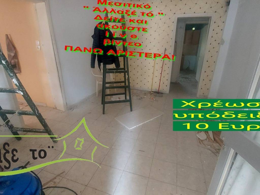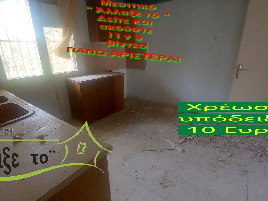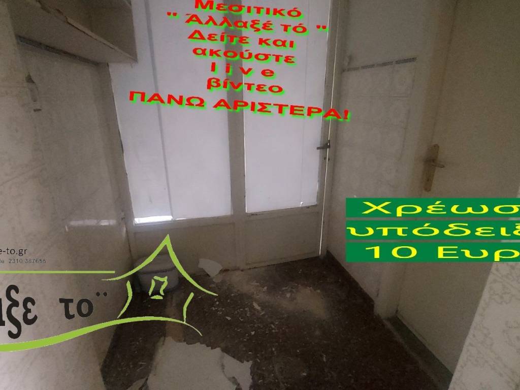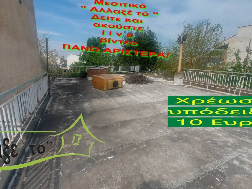 Check the video : https://youtu.be/tBRFZWEbWT4 The Presentation - suggestion of the property costs 10 €.(Including Taxes) law Ν.2859/2000 » Ar 9. If you liked the photos and the description, do not forget to watch and listen to the video! Watch and listen to the video as many times as you like here: https://youtu.be/tBRFZWEbWT4 or right and bottom to the end of the page. So you know from the beginning if it's worth to seeing it.. It's like you are within the home. SERVICES PROVIDED: The Presentation - suggestion of the property costs 10 €.(Including Taxes) Upon completion of the transaction, the above amount is deducted from the Brokerage Fee. The property is indicated by the demonstration of the police ID. The Presentation of the property at our office is free of charge. The Real Estate Change Office was created by Rania Pappa and Vassilis Kontelis, because when they were looking for a home, they were badly affected by ... realtors. Brokering fees is not the only thing that we care about. We love this job very much and we identify with you as if we were looking for a home for us ... Like Like on our Facebook page and see all opportunities here: https: //www.facebook.com/allaxeto.gr ΥοuTube : https://www.youtube.com/user/MsPaco75 Real Estate Office "Change it" Mobile phone for appointment: Vasilis 00306932425542 {cosmote,viper,what's app} Contact Person: Mr. Vasilis Kontelis Tel.: 00302310387655 Address: Riga Ferraiou 175 Sykies P.C. 56626 Thessaloniki Email: b-kontel@otenet.gr www.allaxe-to.gr