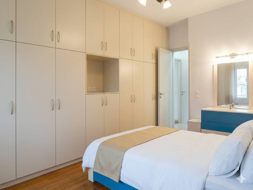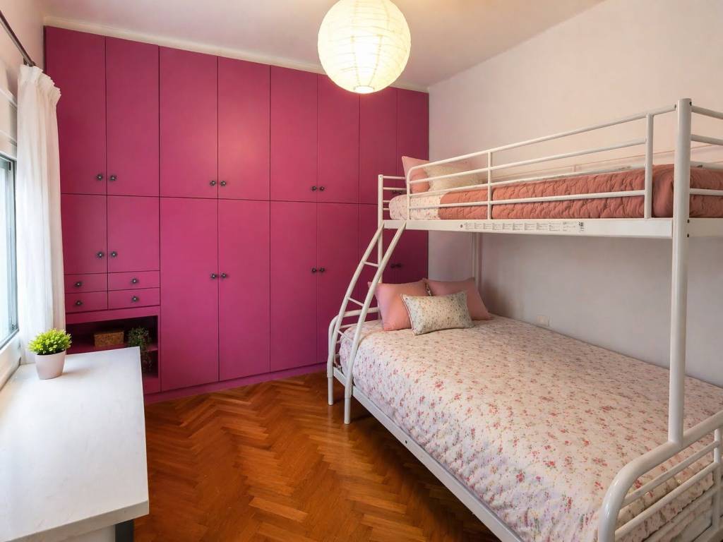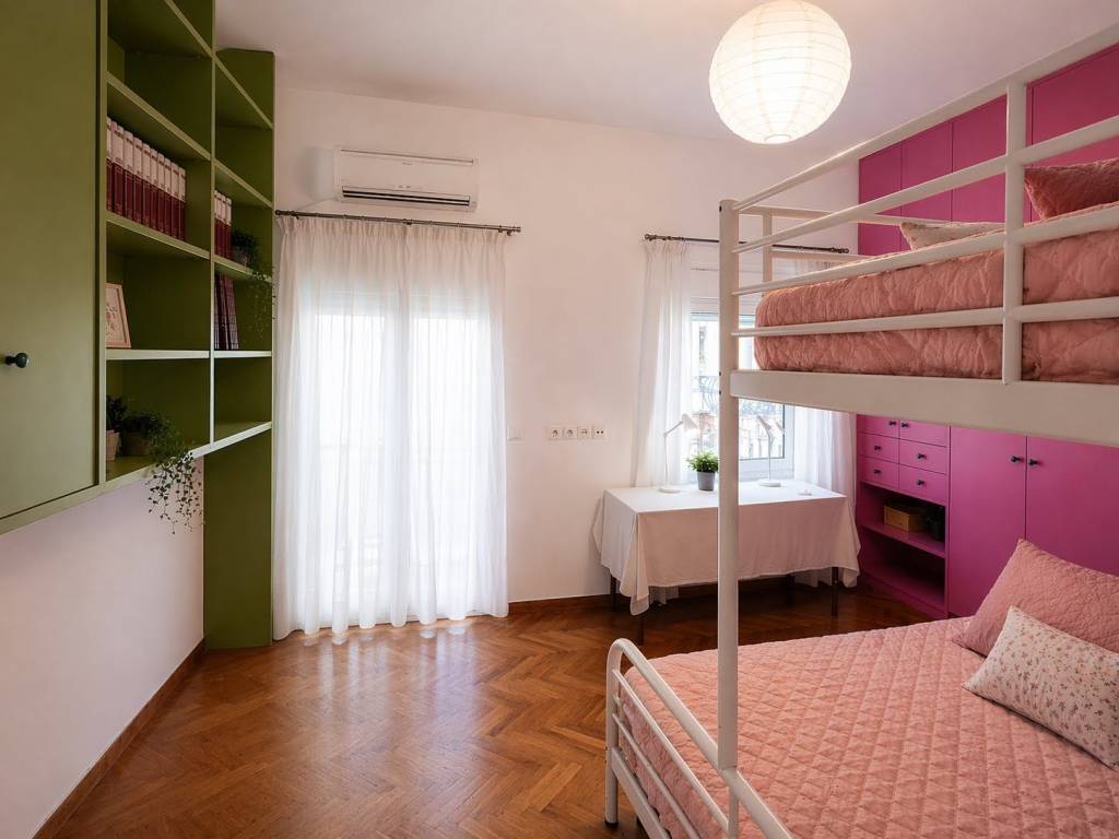 A well-maintained apartment, on the first floor of a detached house, next to the hill of Ippios Kolonos, in a very quiet neighborhood. The metro stations Larissa and Attiki are within walking distance (less than 10 minutes away) and there are bus stops nearby as well. It is south-facing and bright all year round. It has two bedrooms at the front, The comfortable bedroom has a double bed, anatomical mattress, bedside tables, large wardrobe and dressing table. The children's room has a large wardrobe, bookcase and bunk bed. The living room has a display cabinet with space for a TV. The kitchen is spacious, has a large refrigerator, oven with hobs, extractor hood and dining table. It has a storage room with a washing machine. The house has autonomous natural gas heating and four additional air conditioners. The large veranda, which is covered with a pergola, can be used as a beautiful outdoor living area. There are no shared expenses. Note: No brokerage fee is given