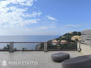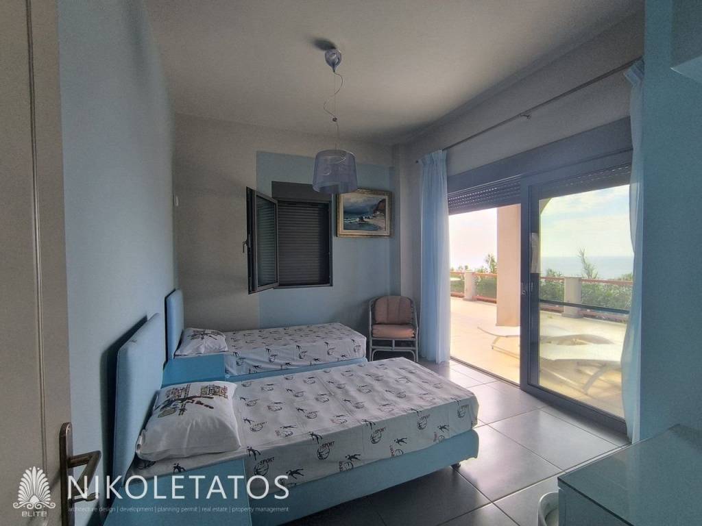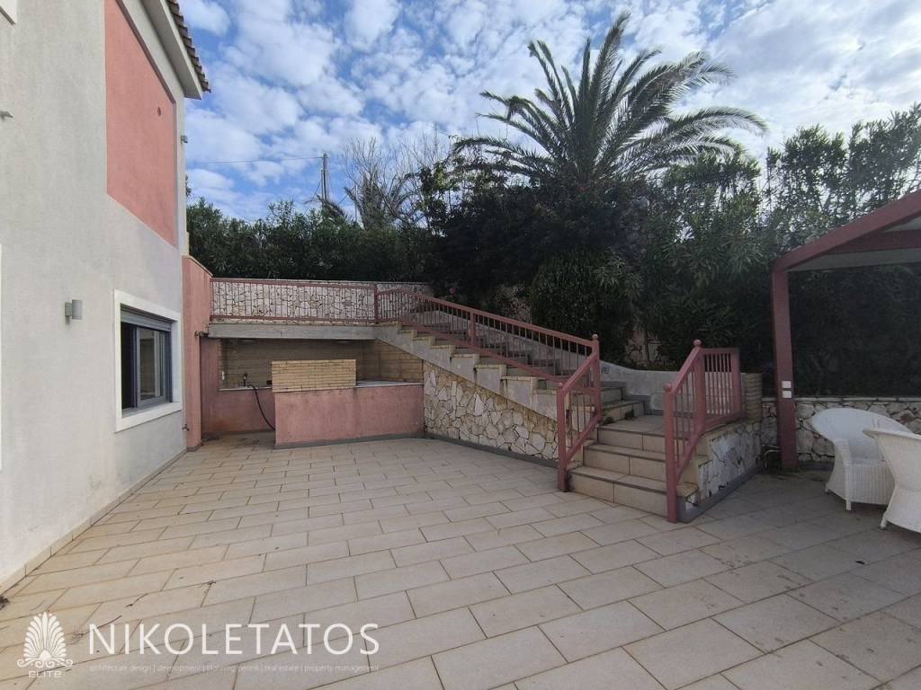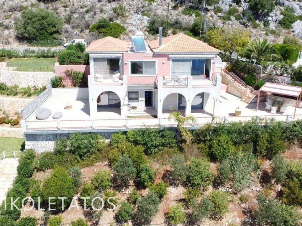 A luxurious, fully furnished villa in an excellent location, situated between Skala and Poros, next to the well-known Apostolata Island Resort & Spa. The villa is developed over two levels, with a total surface area of 180 sq.m., set on a 2,200 sq.m. plot, offering privacy, comfort, and uninterrupted sea views. The first level consists of two bedrooms (one with an en-suite bathroom), one additional bathroom, and an open-plan kitchen, living room, and dining area with a fireplace. It also features two verandas with stunning, unobstructed views of the endless blue sea. The second level includes three bedrooms (one with an en-suite bathroom), one bathroom, and an open-plan kitchen and living area. It also offers a large outdoor terrace with a BBQ, an 8-seat dining area, and the potential for a swimming pool, all enjoying magnificent sea views. The two levels are connected by an internal staircase but can also function as independent residences, as they can be separated via internal doors. In addition, the villa features two independent external entrances. The property includes a private parking area and is offered fully furnished, with all electrical appliances included, while all rooms are equipped with air conditioning units. This property represents an excellent investment opportunity in one of the most privileged locations in Kefalonia, ideal both for private use and for high-yield tourist exploitation. It is located just 5 minutes from Skala, one of the island’s most developed tourist resorts, offering organized beaches, restaurants, cafés, beach bars, and vibrant summer nightlife, and 10 minutes from Poros, where the main port connects the island with mainland Greece, along with shops, services, and everyday amenities. The combination of luxury, views, and strategic location makes this property a truly unique opportunity with strong potential for capital appreciation. Painted, Terrace, Double Glazing, Satellite dish, Parking Outside parking, Plot size 2200sqm, Energy class, Holiday home, Investment, Pets allowed, Internal staircase, View Uninterupted seaview, , Garden 20sqm, AirConditioning, Frames, Alouminium frame double glazed windows, Fully equipped, Barbeque, Fencing, Luxury residence, Security door, Orientation, Access, Facing Central Road, Insect screens, Awning, Short-term rental, Flooring type, Parking type, Bright