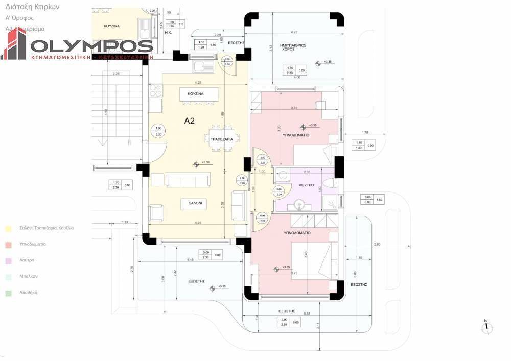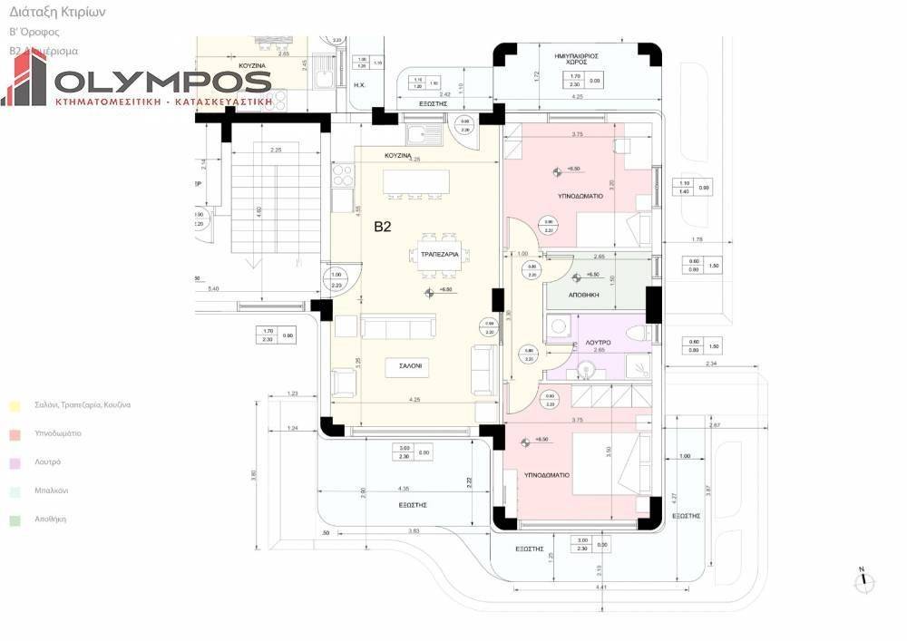 On the 2nd floor is an apartment of 75 sq.m. which consists of 2 bedrooms, a bathroom, open plan living room-kitchen, an internal storage, spacious terraces and 2 parking spaces at the pilotis. The selling price is 295.000 euros.