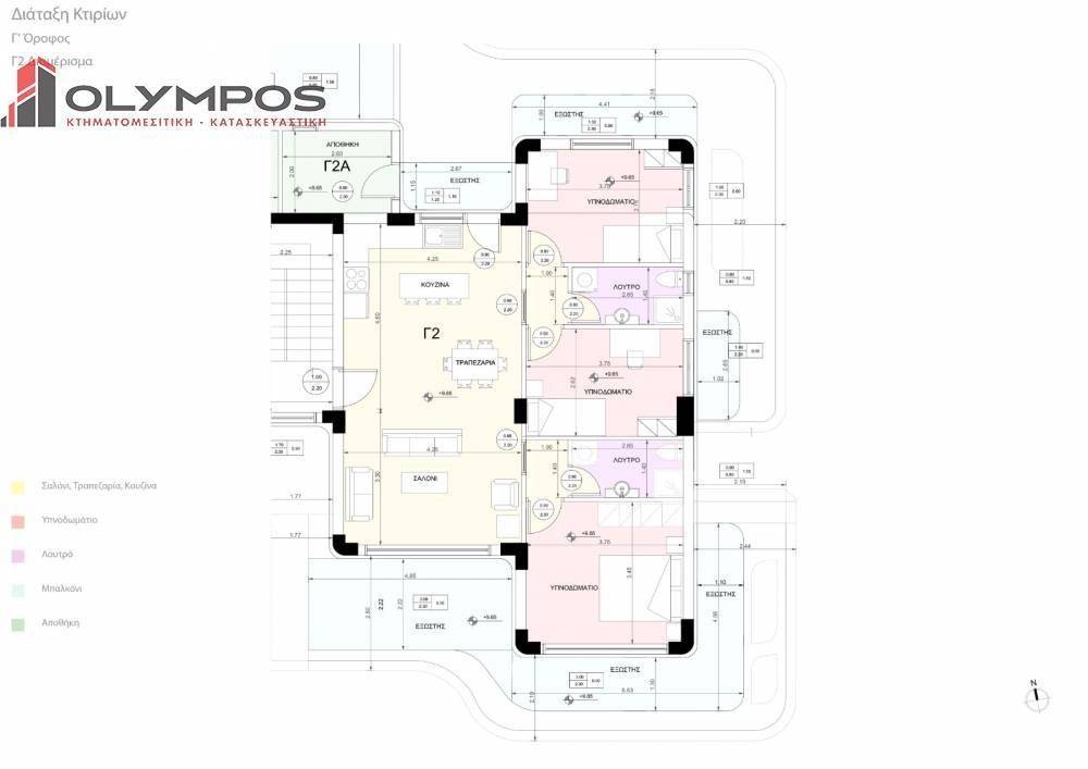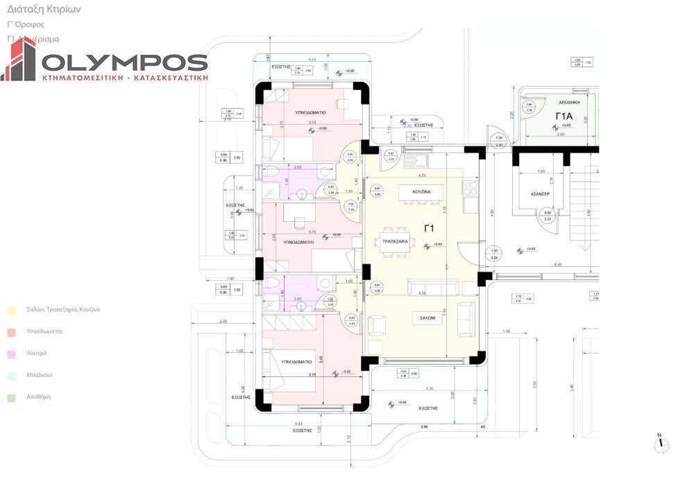 On the 3rd floor is an apartment of 90 sq.m. which consists of 3 bedrooms, 2 bathrooms, open plan living room-kitchen, a storage, terraces and 2 parking spaces at the pilotis. The selling price is 380.000 euros.
