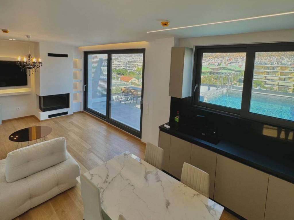 Πυρνάρι Μεζονέτα 130 τμ 5-6ου με διαφορετική είσοδο στο κάθε επίπεδο . Στον 5ο 3υ/δ δύο μπάνια ένα δωμάτιο laundry διαμπερές μεγάλες βεράντες θέα . Στον 6ο σαλόνι κουζίνα μπάνιο και ένα υ/δ διαμπερές απεριόριστη θέα ιδιωτική πισίνα και ενεργειακό τζάκι αντλίες θερμότητας smart home συναγερμός πλήρως επιπλωμένο 2υπογειες θέσεις πάρκινγκ και αποθήκη υπόγειου