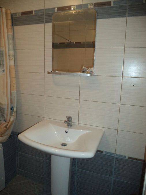 Ground floor maisonette of 130 sq.m. at Mikra (Kardia). Zip. Code: 57500. rent, 400 euros. Year built: 2009 Rooms: 2 living room, kitchen, 2 bedrooms, 2 bathrooms, 1 WC Set over 2 outdoor parking spaces, Corner floor, bright, west exposure, panoramic view Additional features: - Individual heating with oil boiler - Playroom, garden - Floor tiles, plastic frames, double glazing, screens, security door - Fitted wardrobes, boiler - Recently painted - Pet allowed Close to transport: bus
