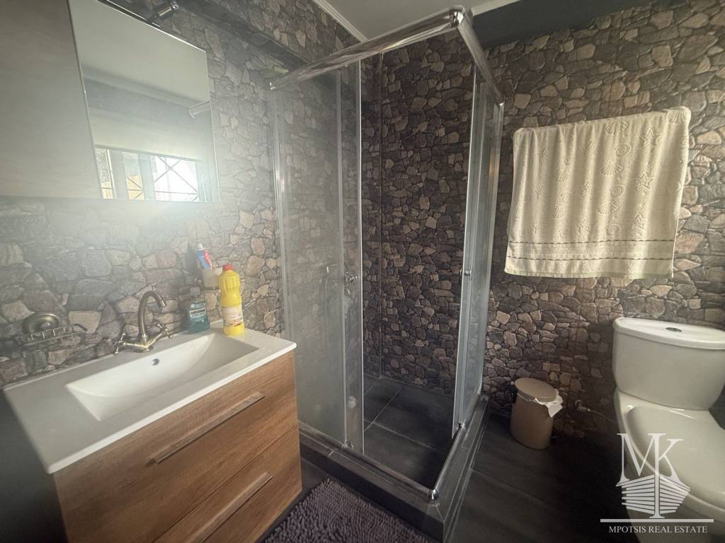 Facade in Municipal road, Access, Orientation West, View Hills - Sea, Zone Residential Residential, Defining property boundaries Wall, Distance from market 300meters, Distance from sea 400meters, Distance from public transport 400meters, Close to sports venues, Near to a main road, Close to schools Elementary and Kindergarten, Facade, Within a city plan, Urban location of the property Within the plan, Plot area 200sq.m, Suitable Permanent residence, Building permit Yes, Duplex, Ground floor area 70sq.m, 1st floor area 70sq.m., 2nd floor area 60sq.m, Property Condition Excellent, Energy class E+, Storage 0sq.m, Drains Cesspit, Garden, Parking space Open, Tiled roof, Insulations, Autonomous levels, Dual-energy solar water heater, Fireplace, Internal stairway, Frames Aluminum, Exterior type windows, Glazing Double, Mosquito nets, Built-in closets, Flooring type Floor Type Tile, Alarm, Air conditioning 0, Current Single phase MPOTSIS REAL ESTATE