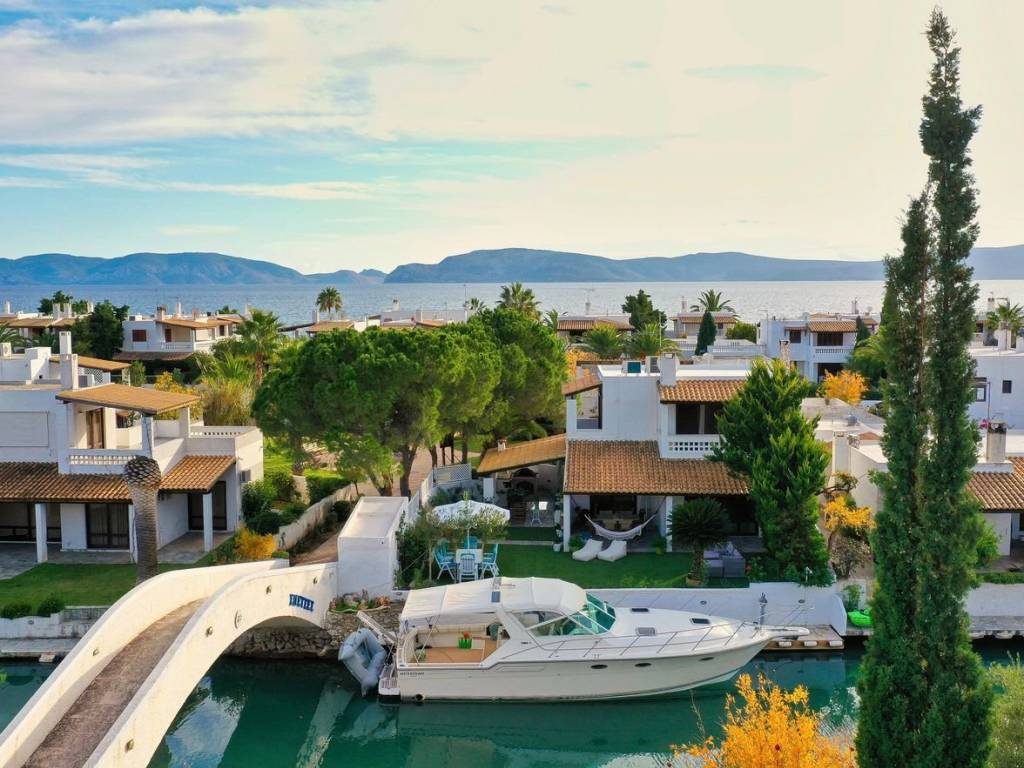 House FOR SALE in Ermioni Akti Ydras for €620.000. This 140 sq. m. House is built on the Ground floor and features 3 Bedrooms, Kitchen-livingroom, 3 Bathrooms The property also enjoys Heating system: Convector, View of the Sea, Window frames: Wooden, accessible for people with disabilities, parking, storeroom 10 sq.m., garden, fireplace, A/C, solar water heater, furnished, appliances, pest net, BBQ, internal stairway. Built in 1991 distance from city 10000 meters distance from airport 200000 meters In the well-known Porto Hydra complex in Ermioni e have for for sale an extremely well-maintained detached house of 140 sq.m. with exclusive use of a plot of 350 sq.m. It consists of open plan kitchen-dining room and living room with fireplace with semi-level, 3 bedrooms (1 master) with large fitted wardrobes, 3 bathrooms and fully equipped kitchen with built-in appliances. The property is independent and has its own pier 10 meters long, in the outside there is a pergola with BBQ and wood oven and a beautifully landscaped garden. The settlement of Porto Hydra is guarded 24 hours a day, there is a covered parking space for 2 cars, a private organized beach and a place for recreation and sports. The area is suitable for holidays all year round due to the mild climate and you can make mini-getaways to Hydra island (with a boat that sails daily in summer), Spetses, Porto Heli, Poros and the theater of Epidaurus. It is located 180 km from Athens, 11 km from Ermioni and 20 km from Kranidi.
