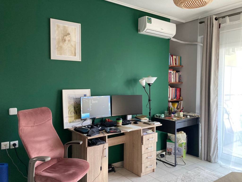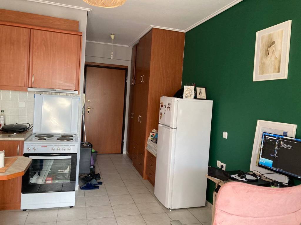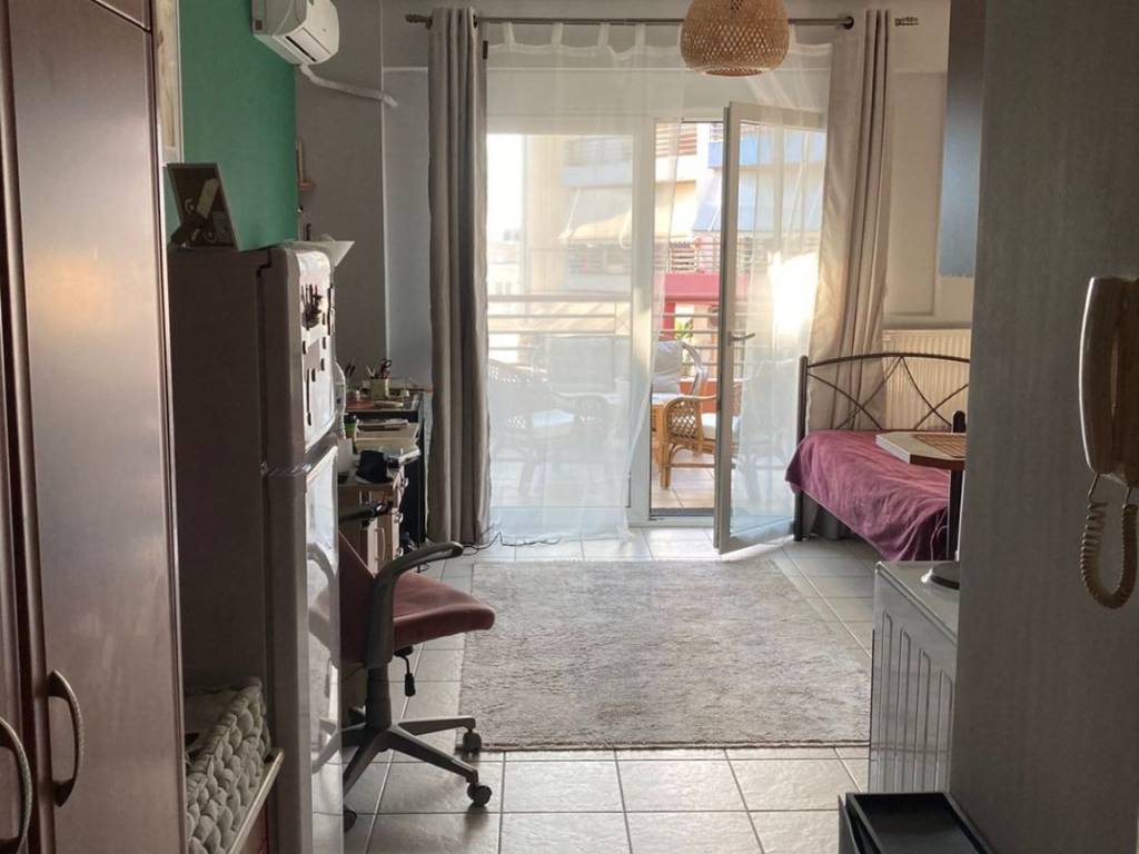 A bright and functional 3rd-floor studio apartment for rent in a modern residential complex in the Agioi Anargyroi area. Located in a strategic spot, it offers the perfect balance between neighborhood tranquility and immediate access to the city’s main hubs. Interior Spaces: Open Plan Living Area: Comfortable bedroom-living space featuring a large, 4-door built-in wardrobe for maximum storage. Kitchen: Separate and fully equipped with electrical appliances (stove/oven, refrigerator). Bathroom: Functional, including a washing machine and water heater. Exterior & Amenities: Large Balcony: Spacious corner balcony equipped with awnings (sunshades) and insect screens. Security: Reinforced security door. Heating/Cooling: Air conditioning unit (A/C). Location: University: Within walking distance from the Department of Planning and Regional Development. Transport: Right next to bus stops, the central bus station (KTEL), and the train station (OSE) for easy commuting. Market: Very close to retail shops, supermarkets, and the local market of Agioi Anargyroi and Volos city center. Available from April 20th