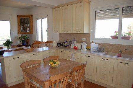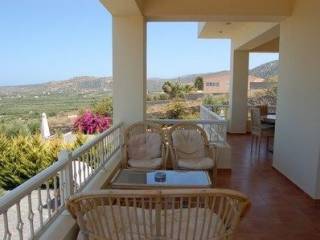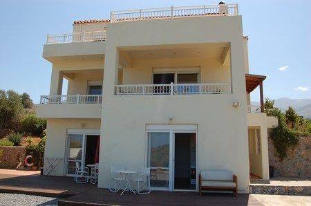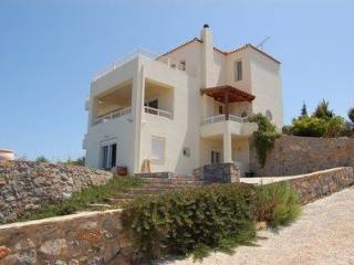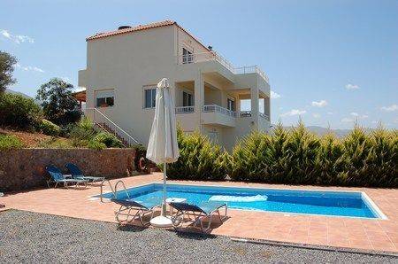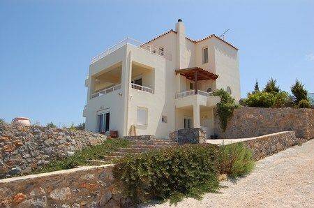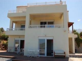 A beautiful three storey villa at Sisi with a living area of 300m², set in a landscaped plot of 3000m². The villa consists of three bedrooms on the first floor (100m²), each with an en - suite bathroom and a large balcony with sea view. The master bedroom also offers a changing room. The ground level (100m²) is composed of a living / dinning area with a wood burner, a fully equipped kitchen, laundry room, office room and a small wc. Two independent guest apartments ( each 50m²) on the basement, fully equipped, with kitchen and shower bath. Outside there are terraces, fruit trees, 30 olive trees, a swimming pool, a workshop an extra storeroom 12m x 5m and parking area. The villa has satellite TV, air - condition and is central heated. Shopping possibilitys and sandy beaches are 10 minutes drive.