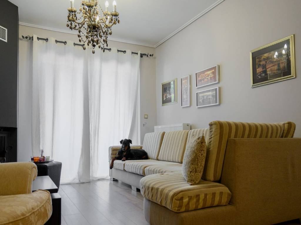 HAIDARI Forest, good condition floor apartment 85 sq.m., 2nd, airy, front, 2 bedrooms, construction '02, 2 bathrooms, heating: independent heating with individual installation, air conditioning, fireplace, security door, solar, awnings, unlimited mountain - forest view, parking, storage, suitable for investment, aluminum frames, screens, night current, pets allowed, active Ok. B, residential zone, floors: tile, new generation daikin heat pump type altherna, alarm, 2 parking spaces, cameras everywhere, three-phase, sliding wardrobes in the bedrooms, wooden floors, alarm traps, basement storage, price €295,000 (SH725). Roka's real estate