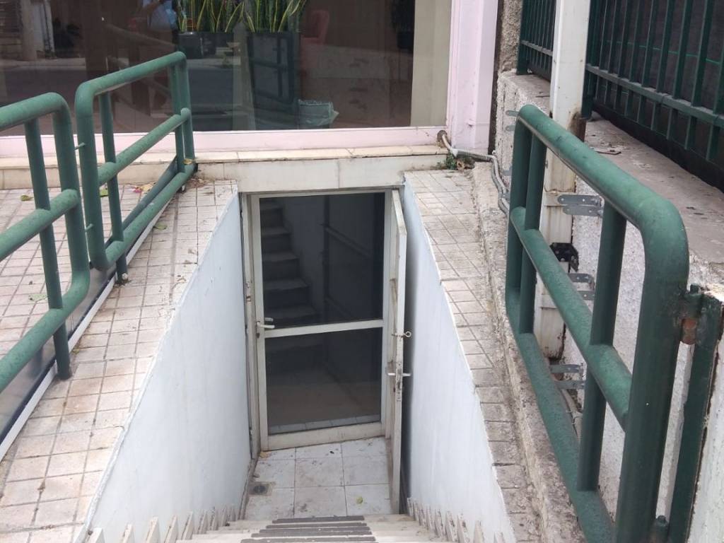 Αποθήκη 89 τ. μ. που βρίσκεται στο υπόγειο επαγγελματικού κτηρίου. Έχει είσοδο από τον δρόμο. Η πρόσβαση γίνεται με μαρμάρινη σκάλα πλάτους ενός μέτρου και πέντε εκατοστών (1,05 μ.), η οποία έχει δέκα εξωτερικά και τέσσερα εσωτερικά σκαλιά. Δεν έχει ράμπα. Υπάρχει δυνατότητα στάθμευσης αυτοκινήτου (VAN, επιβατικού ή μικρού ημιφορτηγού), για φόρτωση και εκφόρτωση εμπορευμάτων ή λοιπών υλικών, σε προκαθορισμένο σημείο του ακάλυπτου χώρου του ακινήτου. Έχει w.c. Διαθέτει δικές του παροχές ρεύματος και νερού. Εσωτερικά είναι σε άριστη κατάσταση,με δάπεδο laminate,σποτάκια φωτισμού ,μικρές θυρίδες εξαερισμού κ.λ.π. Αποτελείται από δύο χώρους, που χωρίζονται με γυψοσανίδα, που μπορούν να ενοποιηθούν.