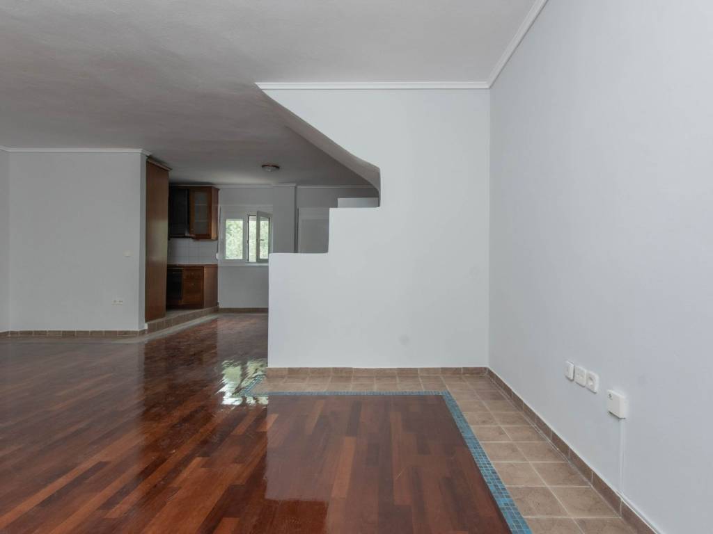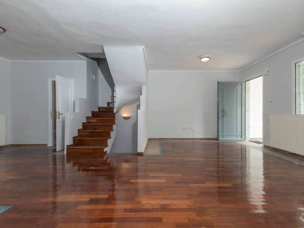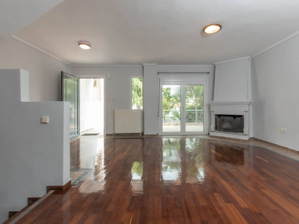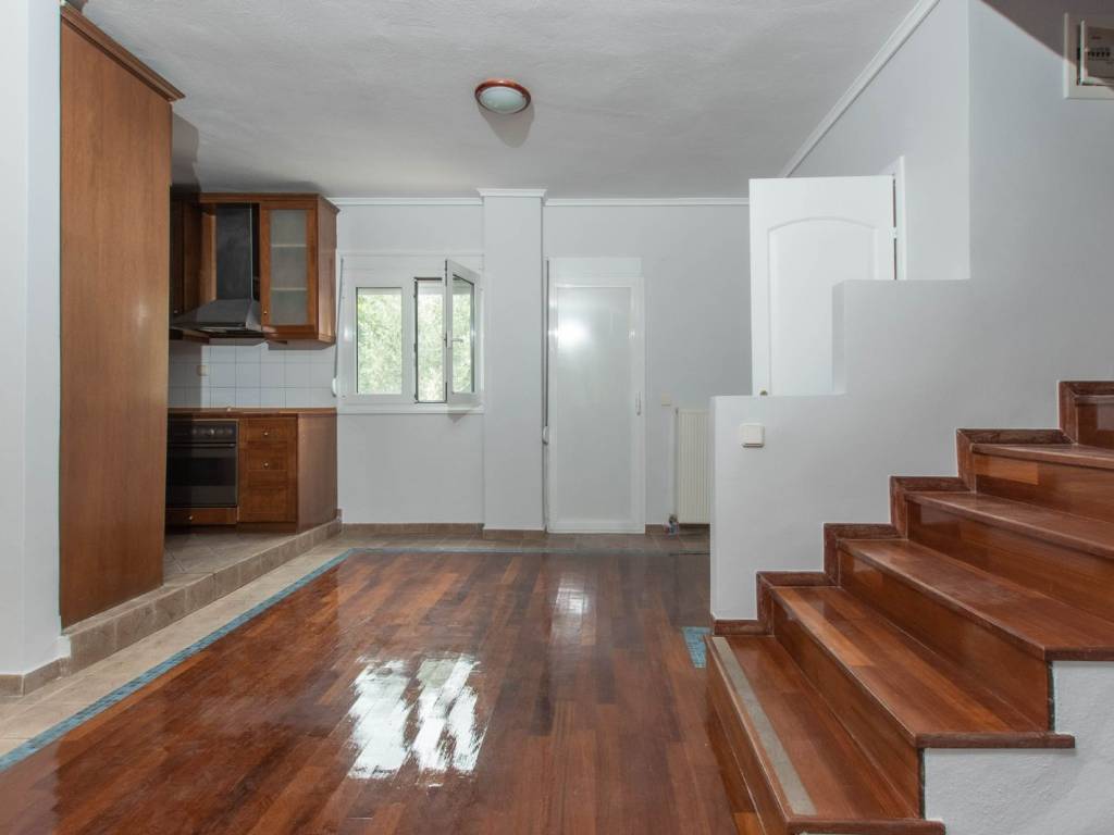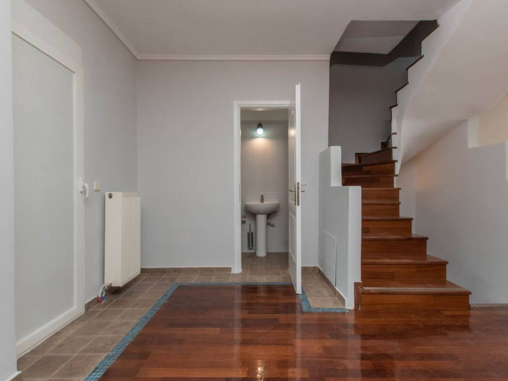 fully renovated maisonette, in a beautiful location in neous epivates of thessaloniki, 180 net square meters with front and back garden, large porch, balcony, 3 bedrooms, 2 fireplaces, oil heating, 2 bathrooms, kitchen and 2 living rooms 1 on the intermediate floor and more one in the basement of the house. iroko wood floor on the stairs and on the middle floor and in the rooms, pine wood, aluminum frames, storage, parking space, built-in wardrobe. ideal both for a permanent residence and for a country house.