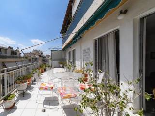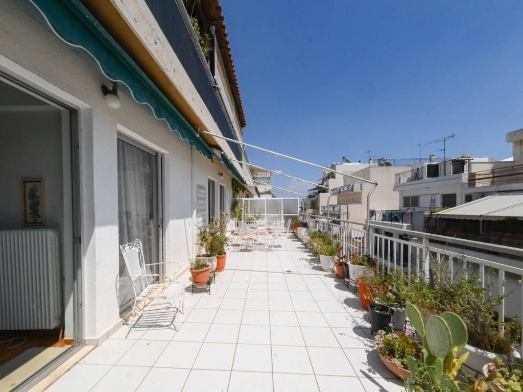 Διαμπερές Ρετιρέ Διαμέρισμα 104τμ του 1982 με ανελκυστήρα σε καλή κατάσταση. Καλός λειτουργικά διαμορφωμένος χώρος (σχέδιο χώρου), με 3 Ευρύχωρα Δωμάτια, 1 Σαλόνι-Τραπεζαρία με μπαλκονόπορτες που οδηγούν σε βεράντα 30τμ., 1 Κουζίνα με Αποθήκη 3τμ, 1 Λουτρό και 1WC με ντουζιέρα, χωλ, πίσω μπαλκόνι και Θέση Στάθμευσης ΙΧ 15τμ. Το πάτωμα είναι από μάρμαρο και τα δωμάτια από παρκέ. Βρίσκεται 200μτ από θάλασσα και Συγκοινωνίες. Ιδανικό για ιδιοκατοίκηση ή για Επένδυση.