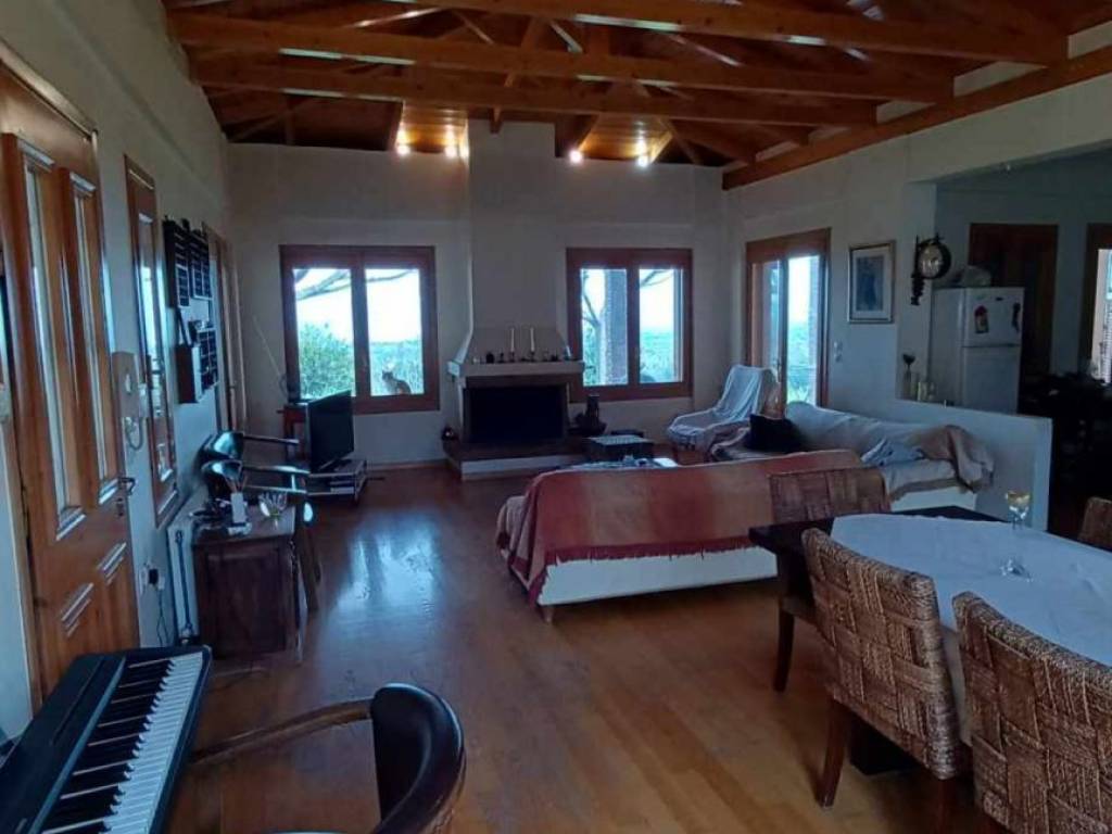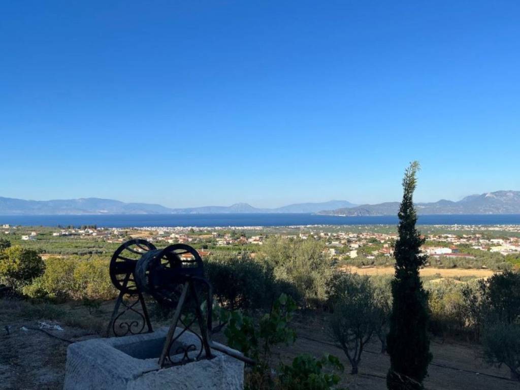 A magnificent house of a total area of 165 sq.m, based on a landplot of 11 acres with unique unobstructed view to the Korintian Gulf. The property consists of two levels offering 4 spacious bedrooms with 2 bathrooms, an open kitchen leadind to a cosy living room,and a large frontage with outdoor space, Other amenities include A/C, fireplace, private parking spaces and outdoor dining space with bbq. The landplot of 11,000 sq.m is comprised of 300 olive trees which makes the property a considerable investment. A great choice for those who love nature and would appreciate a peaceful lifestyle.