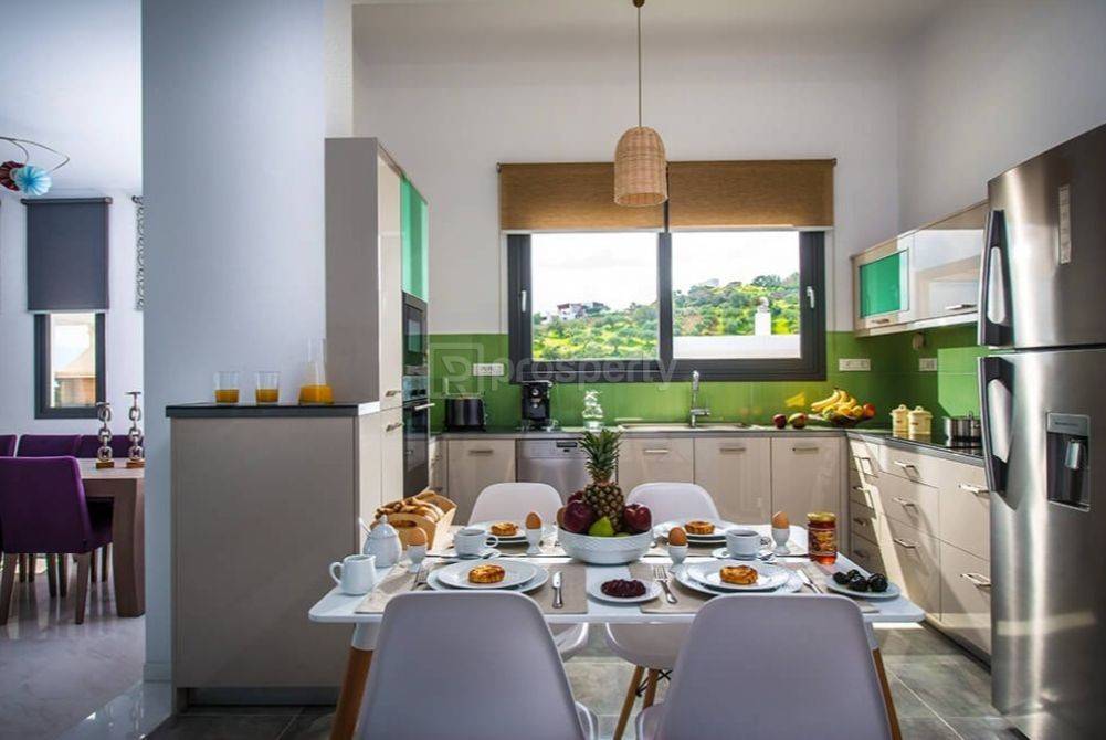 The Villa is a brand new, modern villa, built in 2016. This elegant and luxurious residence is situated in a privileged location on the hillside just outside the beautiful town of Agios Nikolaos. Space: The Villa can accommodate up to 11 people in 5 bedrooms and offers various facilities, modern appliances, and stylish interiors to ensure a comfortable stay. It features an outdoor area of 270 sqm, with a well-maintained lawn garden, a huge swimming pool, barbecue area, and an outdoor sauna. The Villa has an interior space of 307 sqm and is built on two levels. The ground floor consists of an open-plan area with large openings that allow sunlight into the house, offering views of the pool and garden, and providing stunning views of the Mirabello Bay, the island of Agii Pantes, and the Sitia mountains. The living room features a fireplace, two sitting areas with comfortable sofas, and a smart TV. Adjacent is the dining area, a beautiful kitchen equipped with a range of modern appliances, where you can prepare breakfast or dinner for your loved ones. On this level, there are also two bedrooms (which can be connected with a double bed) sharing a shower bathroom and one bedroom with three single beds and a private bathroom with a bathtub. On the upper floor, there are two bedrooms. Each one features a king-size bed, a walk-in wardrobe, and its own bathroom with a bathtub with a jacuzzi. These rooms have access to a large furnished terrace with stunning views of the sea and the port of Agios Nikolaos! All bedrooms are equipped with a TV and air conditioning. The villa is located on a hillside in the suburbs of the picturesque town of Agios Nikolaos and offers stunning views of the Mirabello Bay and the Sitia mountains. The private heated swimming pool (68 sqm) welcomes you to cool off during a hot summer day, while modern and comfortable sun loungers, if that's not enough to relax you, you can also spend some time in the outdoor sauna, which will surely help you relax from stress and rejuvenate! Outside the main living room, there is a spacious furnished terrace and a shaded dining area with barbecue and oven, an ideal place to gather with friends or family and enjoy a homemade dinner under the stars. The Villa is surrounded by a 270 sqm lawn garden with local trees and flowers, while on the upper floor, you will find a spacious furnished terrace overlooking the pool and garden. For those who prefer to swim in the sea, the Avania Beach is just 500 meters away from the villa. https://marketplace.theprosperty.com/listings/8007 ☎️ 210 6812500