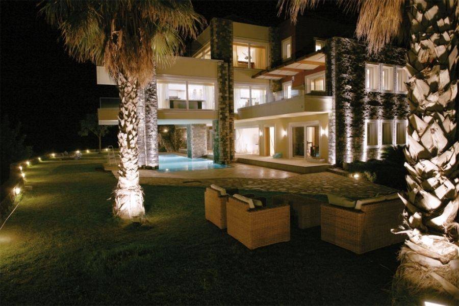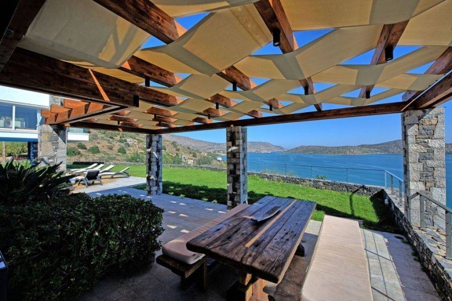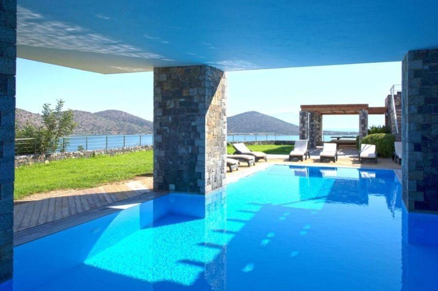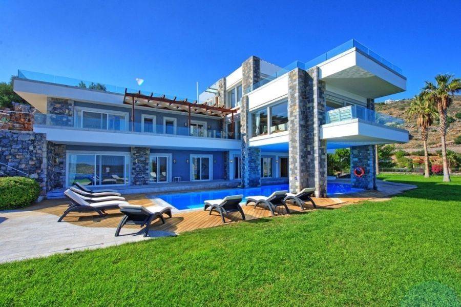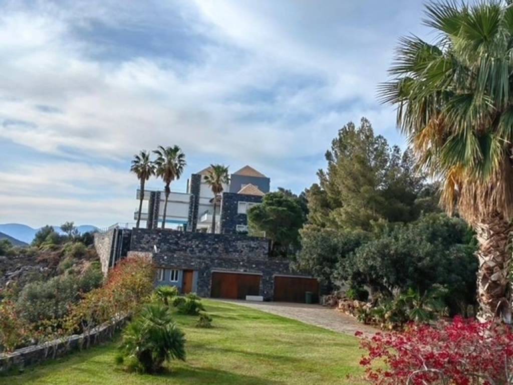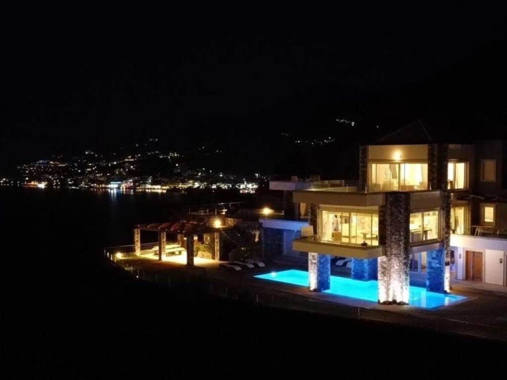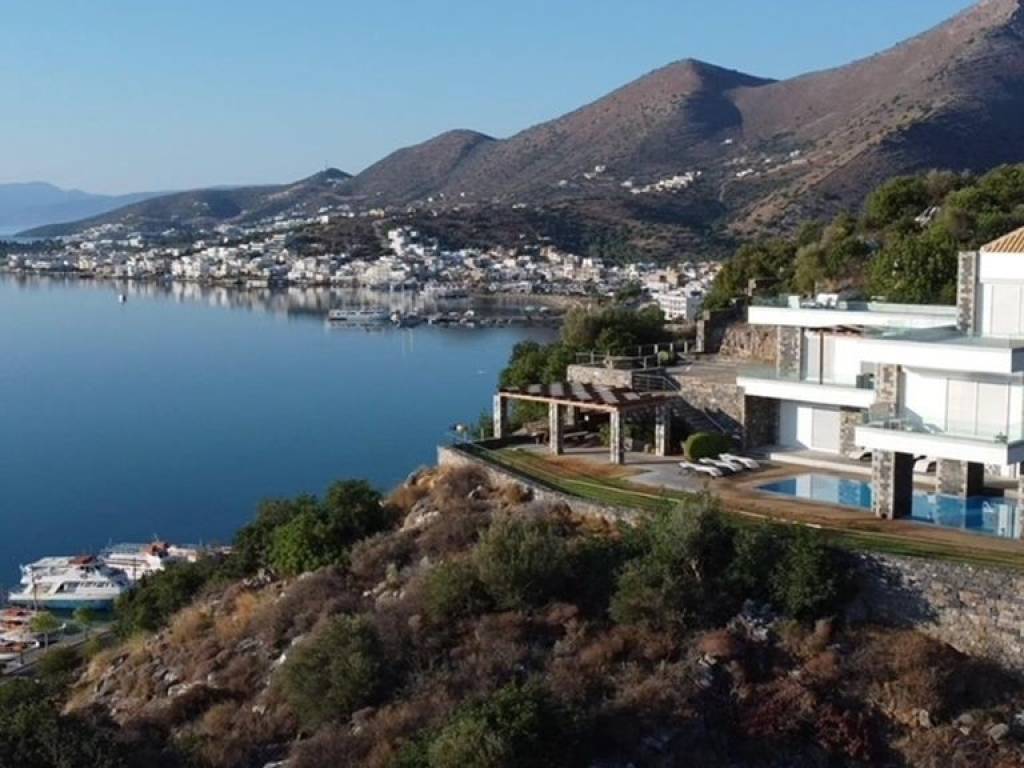 Luxurious villa of 740m2 is available for sale just 200 meters from the sea, 1km from Elounda and 74km from the International Airport of Heraklion. The highly aesthetic villa is developed on three levels. On the ground floor there is a spacious living room with fireplace, a fully equipped kitchen, a fitness area, a WC with shower and three bedrooms where each has its own bathroom. On the first floor we find the open area that hosts the dining room and living room, a bedroom with private bathroom, a WC and a large kitchen with its own terrace that has an outdoor dining area with a wonderful view of the bay of Elounda. The upper level consists of the master bedroom, a bathroom with shower, a kitchenette, a living room and a comfortable terrace. This is a great place for parents or teens who want to have their own private place. The use of natural stone in combination with the wooden floors add warmth and character to this wonderful villa that develops within 3.732m2. Additionally it has central heating, air-conditioning and solar system. Outside it is surrounded by a lush garden with trees, exotic plants and palm trees. Completed with heated pool (16x5m), equipped BBQ with dining area and private parking. The serene waters of Elounda, the historic Spinalonga and the serene sounds of nature compose a dreamy scene around this enchanting villa.