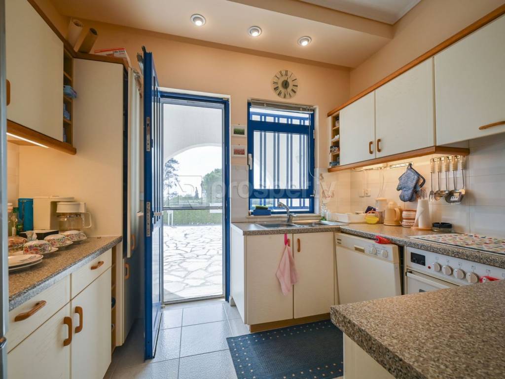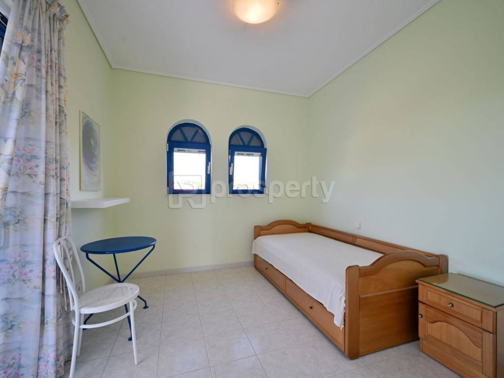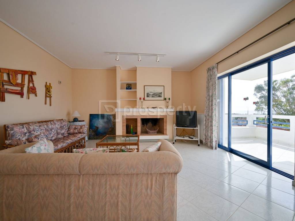 This villa is located within a landscaped, lush plot of 3,600 square meters with a sea view, offering the potential for a swimming pool. It is situated 150 meters from the sea. In the garden, there is a covered BBQ area with a tiled roof (featuring electric rotisseries, a built-in oven, and kitchen cabinets with a marble countertop) approximately 50 square meters, as well as a 17 square meter enclosed storage room, parking for 6 vehicles covered with reeds, a remote-controlled entrance gate to the property, and a 30-cubic-meter underground water tank for rainwater collection. The property includes: Elevated Ground Floor Apartment of 123 square meters with a sea view, comprising one bedroom, one bathroom, one WC, a living room with a fireplace, a dining area, a kitchen, a small storage room, very large terraces with electric awnings, and Pelion stone slabs. Independent Studio of 36 square meters adjacent to the ground floor apartment, featuring one bedroom, one bathroom with a shower, a small living room with a kitchen, and a large terrace. Semi-basement Apartment of 118 square meters, including two bedrooms, two bathrooms, a kitchen, a dining area, a living room with a fireplace, a large storage room with an independent terrace and entrance. It has the option for internal access to communicate with the ground floor apartment. Upper Floor Apartment of 122 square meters, comprising two bedrooms, two bathrooms, a large kitchen, a dining area, a living room with a fireplace, and large terraces with a sea view. There is an elevator serving all floors. All apartments have autonomous heating (oil). All areas are equipped with a modern alarm system & intercom, aluminum frames, tiled floors, modern electrical systems for automatic lighting in all areas. Additionally, there is a triple-action solar water heater. The property was renovated in 2012. https://marketplace.theprosperty.com/listings/1894 ☎️ 210 6812500