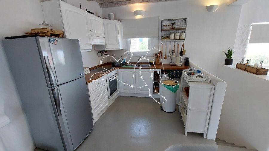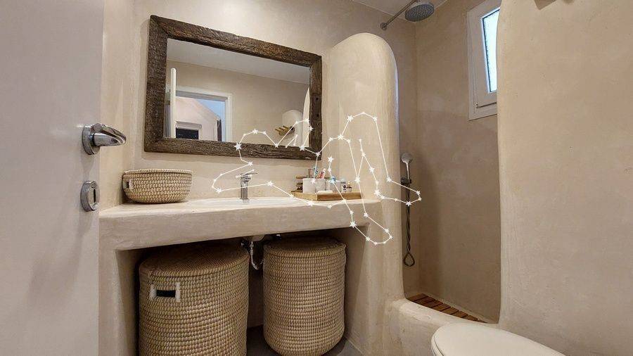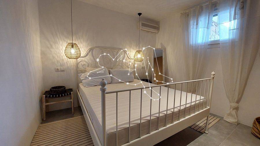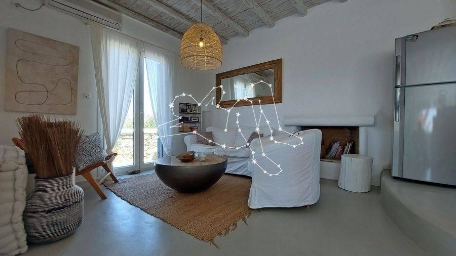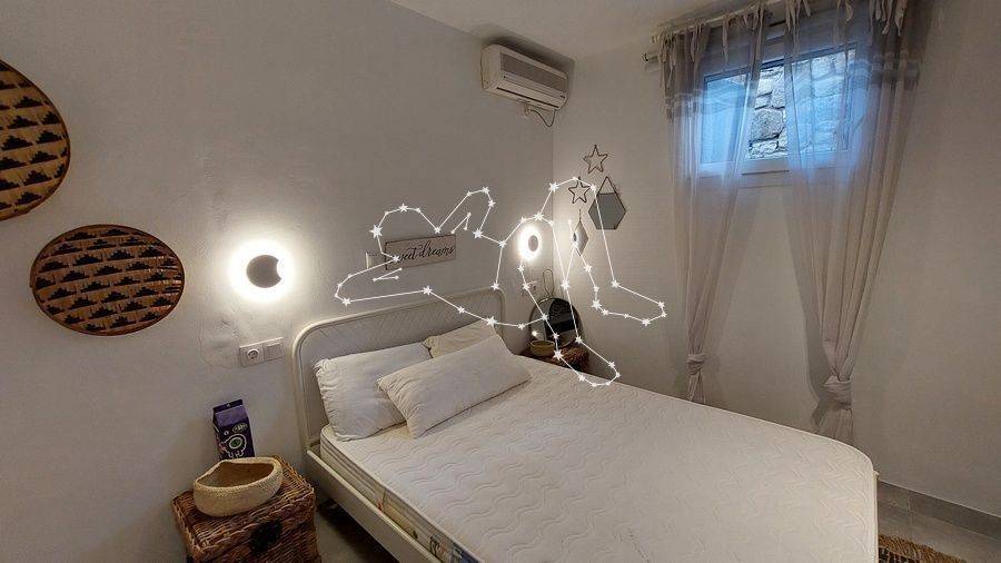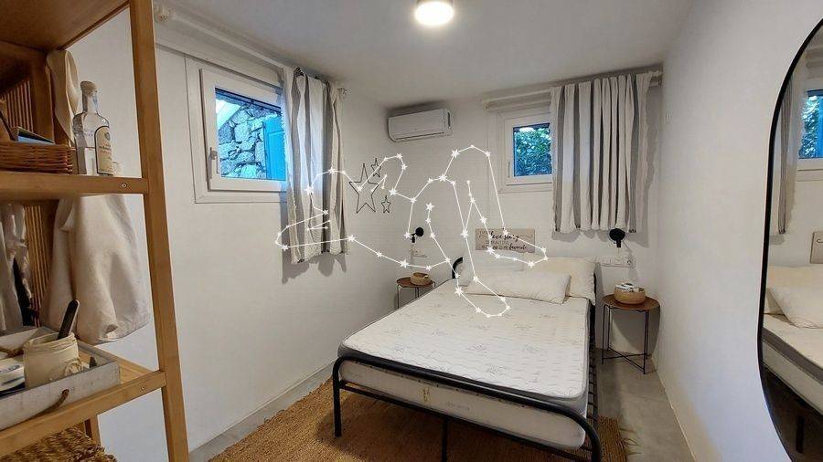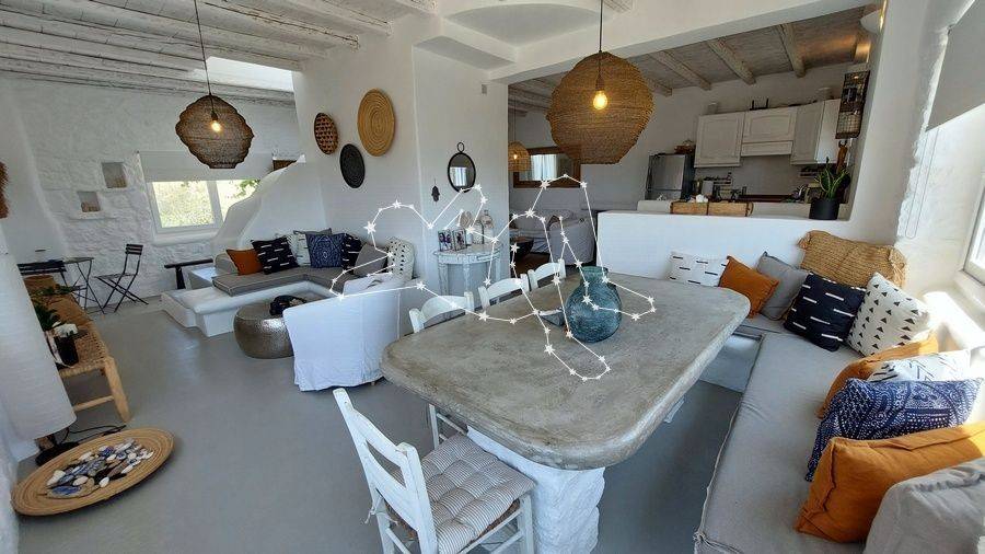 MAISONETTE WITH VIEWS NEXT TO ORNOS The maisonette with views next to Ornos is in the Ano Diakoftis area that benefits from far reaching sea views. It is the perfect place to unwind and escape the bustle of the island, being just a few steps away from all amenities. ACCOMMODATION LAYOUT The fully furnished and equipped maisonette is spread over 2 levels: the raised ground floor and the lower ground level. The main entrance to the house is on the top level, which comprises: the reception area, a small lounge, the dining area, the fully equipped kitchen, and the main living area with the fireplace. A guest WC is also included on this level. A built staircase leads to the lower ground level, which has windows for natural ventilation and lighting in all rooms. This level includes all three (3) bedrooms, as well as a shared comfortable bathroom. OUTDOOR AREAS The property is embraced by two (2) spacious patios, fenced with white picket stonewalls. Both patios feature lush flower beds that enhance the property’s relaxing feeling. The front patio leads to the house’s main entrance, while the one on the house’s back side features a pergola-covered area featuring an al fresco lounge with built sofa. INVESTMENT PROPERTY The maisonette with views is in Ano Diakoftis, in the greater area of Ornos, which is of very high demand for both real estate sales and rentals. The location and the property’s features make it an attractive investment that can ensure a high return on invested capital. DISTANCE FROM - Ornos village: 1,300 m. - Mykonos Town: 3.5 km - International airport: 4.5 km - New Port marina: 7 km