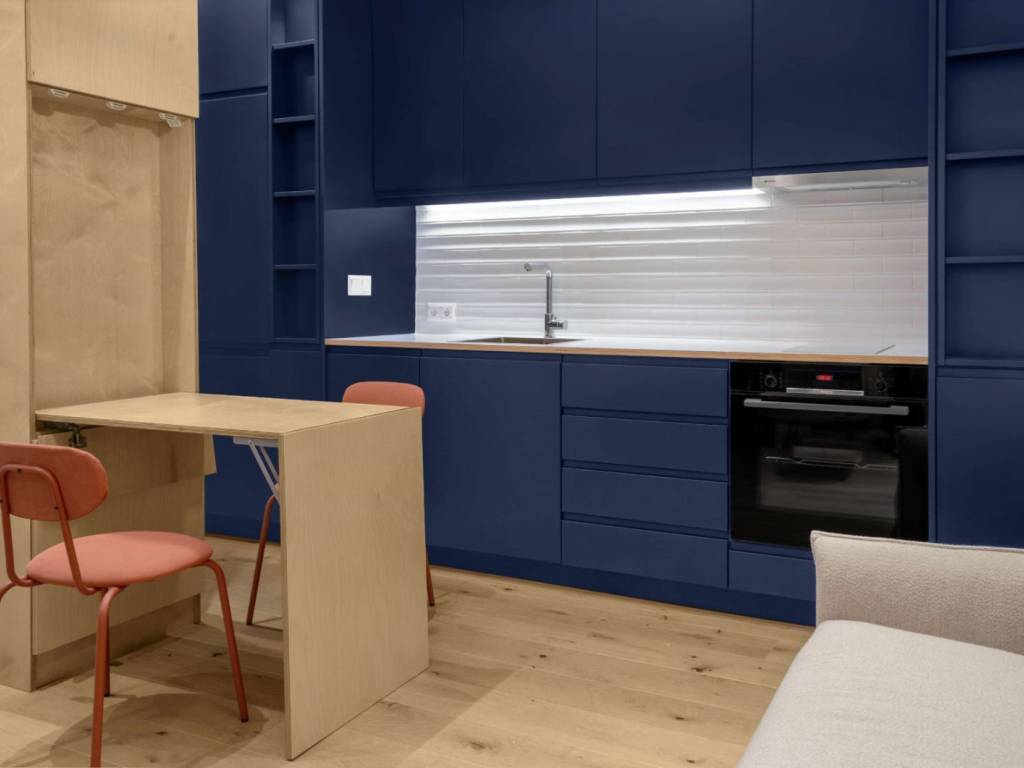 Airbnb AMA available Beautifully designed 30m2 apartment with small balcony & 6m2 of storage space. You wouldn't believe its just 30m2! Thats what good design is! Every single detail was thought of - like ample storage space - a washer/dryer, an integrated fridge freezer, an integrated dishwasher, a space for your hoover & ironing board, a fold-away drop down table, a spice rack, a bookshelf, large sliding mirror closets, a closet for your toiletries. There's just everything one might need. The apartment is sold fully equipped and furnished: A memory foam mattress (144 x 192cm), an integrated Whirlpool 45cm dishwasher, a Sharp fully integrated fridge, a smart Candy washer Dryer 8Kg/5g, a Bosch Oven, a Scandinavian couch, a coffee table and an LG smart 43 inch Tv with a 'One for all' Tv Bracket. The apartment was connected to natural gas and has its own individual heating system. No agent fees