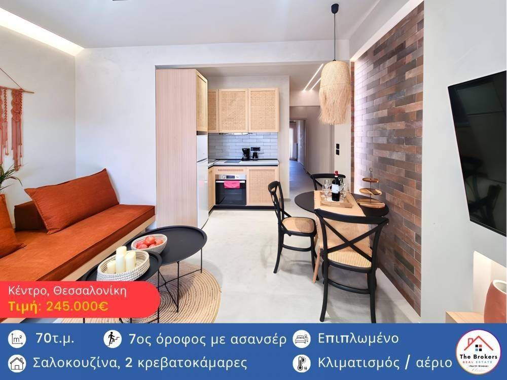 A bright, through-apartment of 70 sq.m. is for sale, located in a prime spot with open views, on the 7th floor of a building with an elevator, on Egnatia Street in the heart of Thessaloniki.
