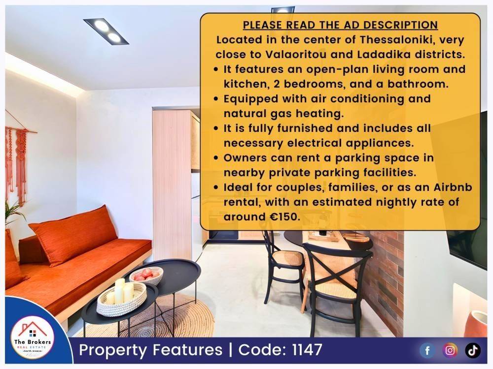 Property Features: The apartment consists of 2 bedrooms (one master and one smaller), an open-plan living room with a kitchen, and a bathroom. All rooms have access to balconies and are very bright. The apartment has well-thought-out spaces and is decorated following a boho philosophy. The walls have unique textures, while the wicker details and the spacious veranda give a holiday or vacation home feel, every day, right in the city center. Additionally, it is a through-apartment, providing ample natural light.