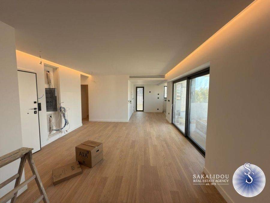 Voula Kato, minimal aesthetic 3rd floor apartment of 81 sq.m., under construction with delivery date on February 2025, energy class A+, central location, quiet neighborhood and in an area with a view and an open horizon. It consists of 2 bedrooms, living room, kitchen, 1 bathroom and 1 WC, large balcony and underground parking space and storage. It has underfloor autonomous heating system with a heat pump, VRV cooling with a different pump, aluminum energy frames/crystals, oak floors, alarm, awnings, screens, double glazing, solar water heater, boiler, satellite antenna, intercom, night current. It is located 600m. from the sea, very close to the market, the square, transport and schools.