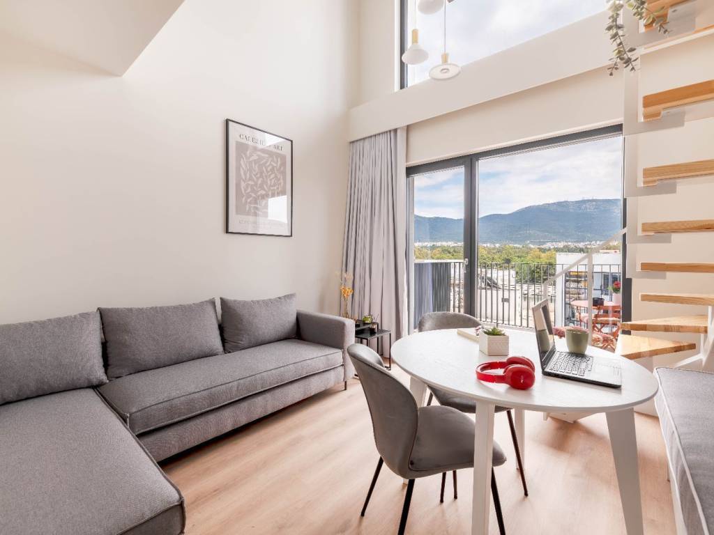 Loft-Style Maisonette with unique minimal design and contemporary aesthetics. Modern space, fully furnished and equipped, ideal for those seeking comfort and high-end aesthetics. Flexible lease duration from 3 months up to 2 years. The listed price applies to a 12-month lease. The final price is adjusted based on lease duration. Total communal and operational expenses (power, water, wifi) are €140 per month, extra on the price of rent. Property Description: - Brand-new building (delivered September 2024), Energy Class A+. - High-speed internet. - 24/7 security with CCTV cameras in all communal areas. - Laundry room with professional washing machine and dryer. - Rooftop garden with panoramic views. - Technical assistance. Apartment Features: - Loft Layout. Open, functional spaces with double-height ceilings offering brightness and a sense of spaciousness. - Comes with furniture and appliances. - Minimal design emphasizing on functionality and comfort. - Living Comfort Amenities: Security door 24/7 hot water Air conditioning for heating/cooling Electric awnings and shutters Black out curtains Insect screens Panoramic view *The photos displayed in the listing are indicative. Location: Just a 5 minute walk to the "Katehaki" metro station in a quiet and safe neighborhood, 4 minute walk to “Sotiria” Hospital, 8 minutes to “Georgios Gennimatas” Hospital, and close to military hospitals and the National Technical University of Athens (NTUA). Nearby the lively Agia Sofia Square in Psychiko, offering a variety of dining and entertainment options. Viewings are not possible at this time. A virtual tour video is available upon request. For more information about the apartments and our available projects, contact us or visit https://rentwise.gr/.