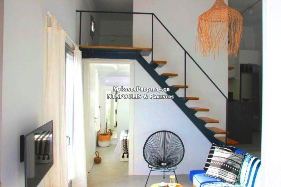 ID: 1792868, Apartment, Ano Mera (Village), 1rst, 57 sq.m, 2 Bedroom/s, 1 bath/s ==The apartment is in a residential complex, with a common swimming pool, very close to the beaches of Kalafati, Kalo Livadi, and Elia. It consists of a living room, a kitchen, 1 bedroom, 1 bathroom, and 1 more bedroom which is located in a 17 sq.m loft. It is suitable for use as a private residence or for tourism holding.