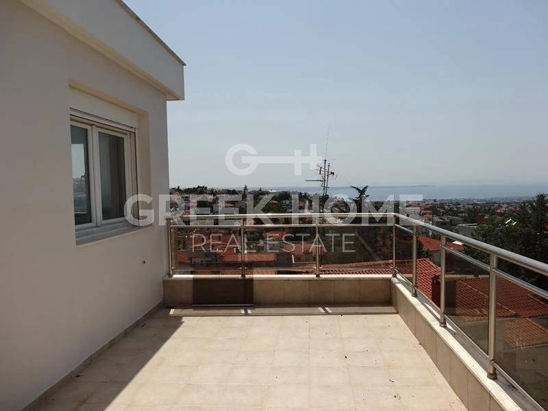 Panorama, Synikismos Nomou 751 - Independent Maisonette 250sqm bedrooms 5, levels 4, ground floor - 1st - 2nd - rooftop room, unfinished, year built 2024, energy class A, 2 living rooms, hall, 2 kitchens, 3 bathrooms, wc, heating type: autonomous (natural gas), parking, quiet, dual aspect apartment, luminous, panoramic view, frontage, storage space, fireplace, balconies, elevator, garden, aluminum frames, double glazed windows, ceramic tiles floors, without common charges, secure door, alarm, luxurious, internal staircase, playroom, internal elevator, laundry room, pets allowed, southern orientation.