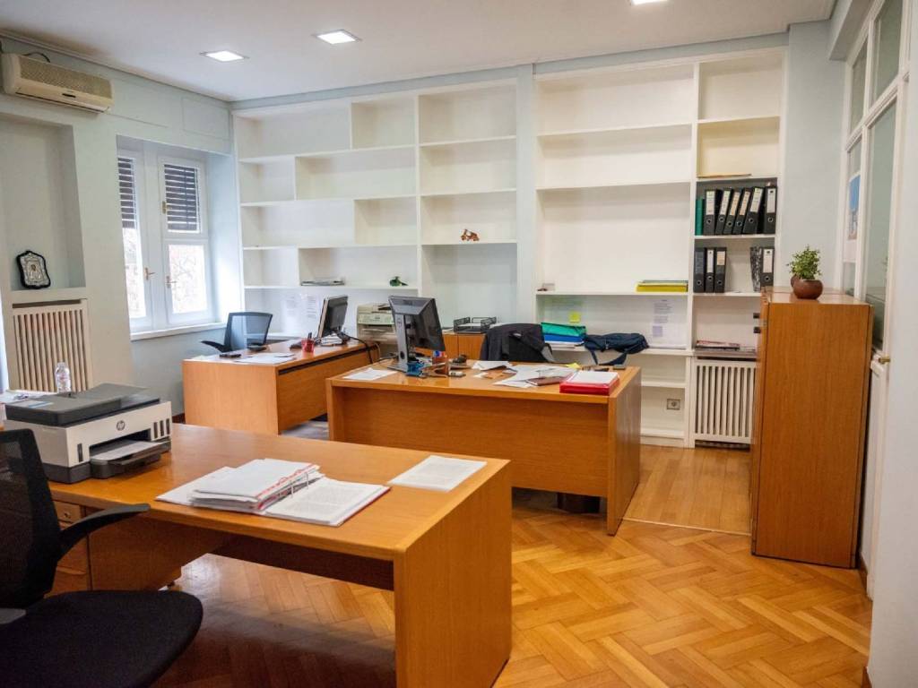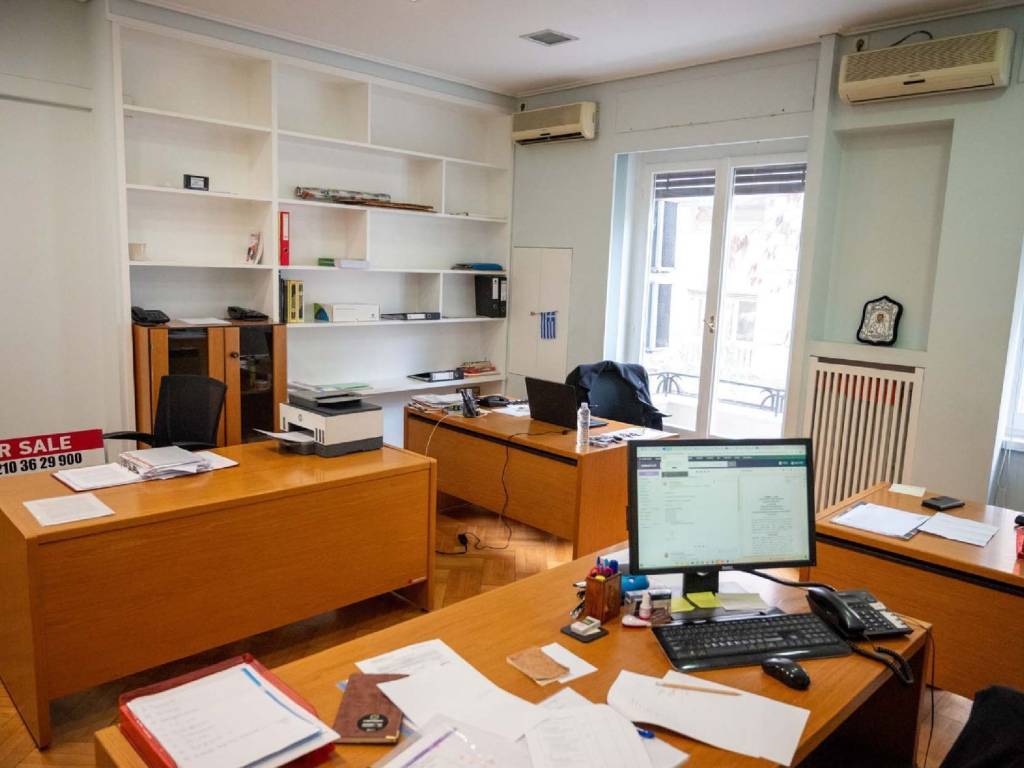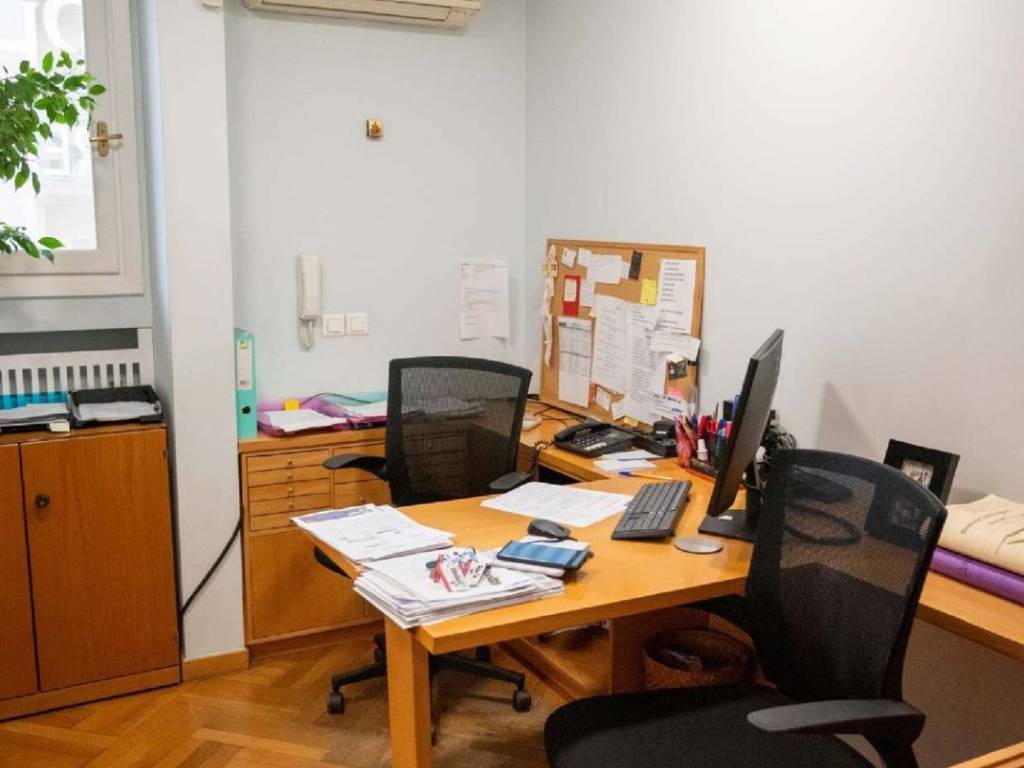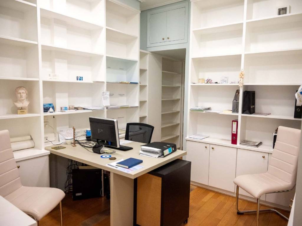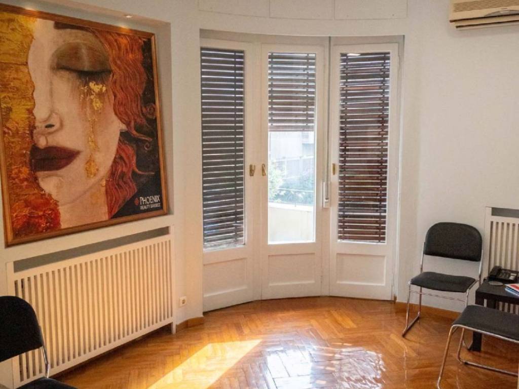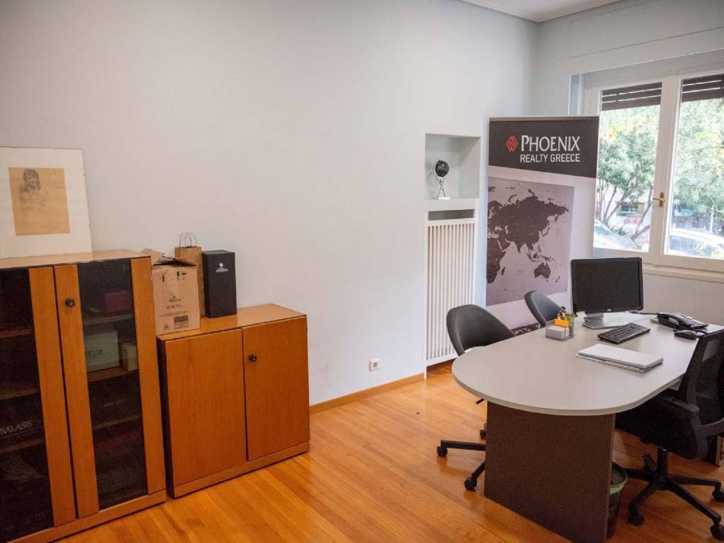 Σε αρχοντική πολυκατοικία του 1938 πωλείται γραφείο, επί της Πατριάρχου Ιωακείμ, στην καρδιά του Κολωνακίου, το οποίο δύναται να γίνει και κατοικία, πολυτελώς ανακαινισμένο. Η βαριά μπρούντζινη πόρτα της εισόδου, μας οδηγεί σε μια εντυπωσιακή, πολυτελή μαρμάρινη είσοδο. Το ύψος των ταβανιών και το μαρμάρινο ελικοειδές κλιμακοστάσιο μας ταξιδεύει σε εποχές μεσοπολέμου και μας οδηγεί σε ένα παλιό γερμανικό ανελκυστήρα, που λειτουργεί άψογα, μετά από τον εκσυγχρονισμό του μηχανισμού του. Το γραφείο έχει εμβαδόν 150τμ, είναι άψογα ανακαινισμένο με τριφασική παροχή ρεύματος με καινούριες αόρατες καλωδιώσεις και μεγάλο πίνακα ελέγχου. Έχει 12 αυτοτελείς και διακεκριμένες θέσεις εργασίας με όλες τις αναγκαίες παροχές στην καθεμία. Υπάρχουν παράλληλα 9 κλιματιστικά inverter με αυτοτελείς γραμμές, κάμερα ασφαλείας, αποθήκη στο υπόγειο 6,5τμ, κατάλληλα διαμορφωμένη. Μπορεί να χρησιμοποιηθεί παράλληλα με ελάχιστες μετατροπές και ως κατοικία, λόγω της φωτεινότητας και της ζωντάνιας του Κολωνακίου.