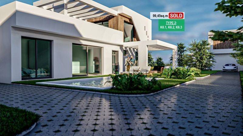 • 15 Κατοικίες από 101,81 τ.μ. έως 105,71 τ.μ. που αποτελούνται από σαλοκουζίνα, 3 υπνοδωμάτια, 2 μπάνια, ιδιωτική πισίνα.