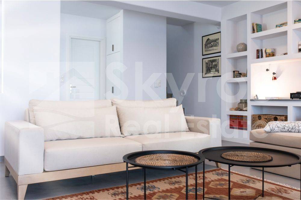 Οικόπεδο 529,5μ², με κτίριο 157μ² στην περιοχή Λιναριά Σκύρου. Διαθέτει 2 δρόμους και εξαιρετική θέα στην θάλασσα. Το κτίριο αποτελείται από διώροφο σπίτι με εσωτερική σκάλα. Στο ισόγειο το οποίο είναι 66,5μ² υπάρχει μεγάλη κουζίνα με εντοιχισμένες συσκευές, μεγάλο σαλόνι με ενεργειακό τζάκι και χτιστή βιβλιοθήκη, μπάνιο και χώρος πλυντηρίου. Στον όροφο των 48,67μ² υπάρχουν 2 κρεβατοκάμαρες και μπάνιο. Επίσης, γκαρσονιέρα 30,45μ² με αυτόνομη είσοδο και βεράντα και αποθήκη 10,68μ². Το κτίριο ολοκληρώθηκε την άνοιξη του 2022 και είναι σε άριστη κατάσταση. Διαθέτει κεντρική θέρμανση και air condition, ενώ περιβάλλεται από βεράντες με εκπληκτική και ανεμπόδιστη θέα. Τα κουφώματα διαθέτουν σίτες, ανάκληση και διπλά θερμομονωτικά τζάμια. Υπάρχει επιπλέον συντονιστής δόμησης 243μ². Στους ανοικτούς χώρους του οικοπέδου υπάρχουν δέντρα και φυτά που ποτίζονται με σύστημα αυτόματου ποτίσματος. Υπάρχει ετοιμότητα πώλησης.