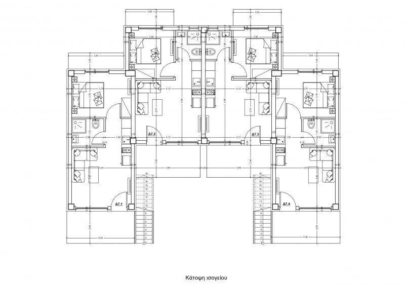 • 4 Διαμερίσματα ισογείου από 34,10τ.μ. έως 37,20τ.μ, που αποτελούνται από σαλοκουζίνα, 1 υπνοδωμάτιο, 1 μπάνιο.