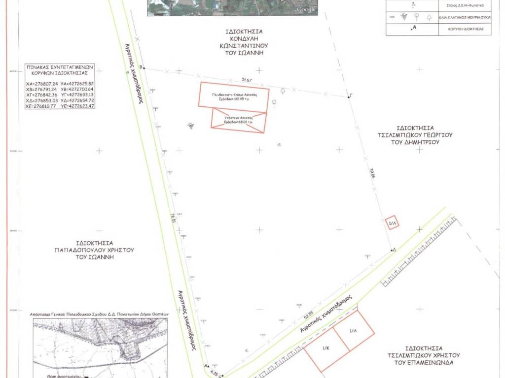 ΤΟ ΑΚΙΝΗΤΟ ΕΙΝΑΙ ΕΝΤΟΣ ΣΧΕΔΙΟΥ ΟΙΚΙΣΜΟΥ ΔΗΜΟΤΙΚΟΥ ΔΙΑΜΕΡΙΣΜΑΤΟΣ ΠΑΝΑΙΤΩΛΙΟΥ ΔΗΜΟΥ ΑΓΡΙΝΙΟΥ. ΕΝΤΟΣ ΤΟΥ ΒΡΙΣΚΕΤΑΙ ΚΤΙΣΜΑ ΕΜΒΑΔΟΥ 103 τ.μ. ΜΕ ΝΟΜΙΜΗ ΑΔΕΙΑ ΕΚΜΕΤΑΛΕΥΣΗΣ ΜΙΚΡΗΣ ΚΤΗΝΟΤΟΡΦΙΚΗΣ ΜΟΝΑΔΑΣ ΑΙΓΟΠΡΟΒΑΤΩΝ. ΕΠΙΣΗΣ ΝΟΤΙΑ ΤΟΥ ΚΤΙΣΜΑΤΟΣ ΥΠΑΡΧΕΙ ΥΠΟΣΤΕΓΟ ΕΜΒΑΔΟΥ 70 τ.μ. ΤΟ ΑΚΙΝΗΤΟ ΕΝΙΑ ΠΕΡΙΦΡΑΓΜΕΝΟ. ΕΧΕΙ ΕΠΙΣΗΣ ΣΥΝΔΕΣΗ ΜΕ ΤΟ ΔΙΚΤΥΟ ΥΔΡΕΥΣΗΣ ΤΟΥ ΔΗΜΟΥ ΑΓΡΙΝΙΟΥ. ΣΕ ΚΟΝΤΙΝΗ ΑΠΟΣΤΑΣΗ 120 μ. ΔΙΕΡΧΕΤΑΙ ΔΙΚΤΥΟ ΗΛΕΚΤΡΙΣΜΟΥ. ΕΝΤΟΣ ΤΟΥ ΑΚΙΝΗΤΟΥ ΒΡΙΣΚΟΝΤΑΙ 50 ΕΛΑΙΟΔΕΝΔΡΑ ΛΑΔΟΕΛΙΑΣ ΗΛΙΚΙΑΣ 10 ΕΤΩΝ. ΕΠΙΣΗΣ 10 ΕΛΑΙΟΔΕΝΔΡΑ ΕΛΙΩΝ ΑΓΡΙΝΙΟΥ ΚΑΙ ΚΑΛΑΜΩΝ ΗΛΙΚΙΑΣ 50 ΕΤΩΝ. ΕΠΙΣΗΣ 12 ΕΣΠΕΡΙΔΟΕΙΔΗ ΔΕΝΔΡΑ ΗΛΙΚΙΑΣ 10 ΕΤΩΝ. ΤΟ ΑΚΙΝΗΤΟ ΑΠΕΧΕΙ 1250 μέτρα ΑΠΟ ΤΗΝ ΕΘΝΙΚΗ ΟΔΟ ΑΓΡΙΝΙΟΥ ΜΕΣΟΛΟΓΓΙΟΥ ΚΑΙ 1000 μέτρα ΑΠΟ ΤΗΝ ΕΠΑΡΧΙΑΚΗ ΟΔΟ ΑΓΡΙΝΙΟΥ ΘΕΡΜΟΥ. ΤΟ ΑΚΙΝΗΤΟ ΕΧΕΙ ΠΡΟΣΟΨΗ ΣΕ ΔΥΟ ΔΡΟΜΟΥΣ, ΓΩΝΙΑΚΟ Ο ΕΝΑΣ Ο ΔΥΤΙΚΟΣ ΕΧΕΙ ΜΗΚΟΣ 76 μέτρα ΚΑΙ Ο ΝΟΤΙΟΣ 52 μέτρα.