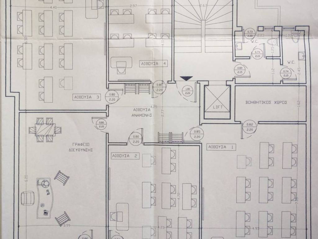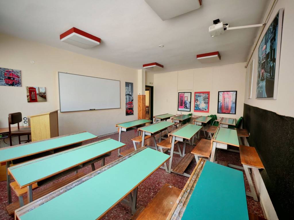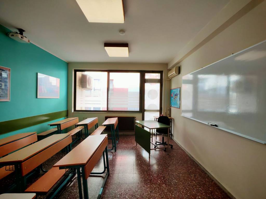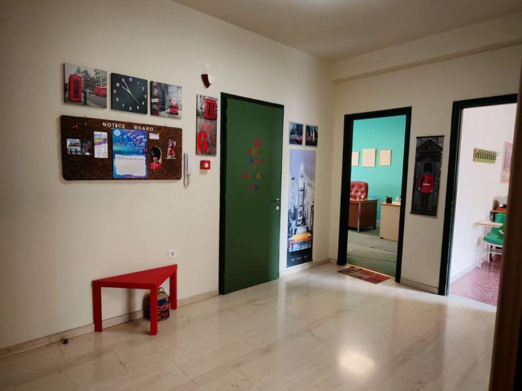 Πολύ κεντρικό, άριστη κατάσταση, πολύ ευρύχωρο και φωτεινό, ιδανικό για φροντιστήριο ή γραφεία. Πρώην κέντρο ξένων γλωσσών, μπορεί να δοθεί με τον εξοπλισμό του φροντιστηρίου (θρανία, γραφεία, βιβλιοθήκες, πίνακες, projectors κτλ.) ή να νοικιαστεί κενό για άλλη επαγγελματική χρήση. Αποτελείται από 5 αίθουσες/γραφεία, ένα χωλ/αίθουσα αναμονής, 2 WC και μία μικρή αποθήκη.
