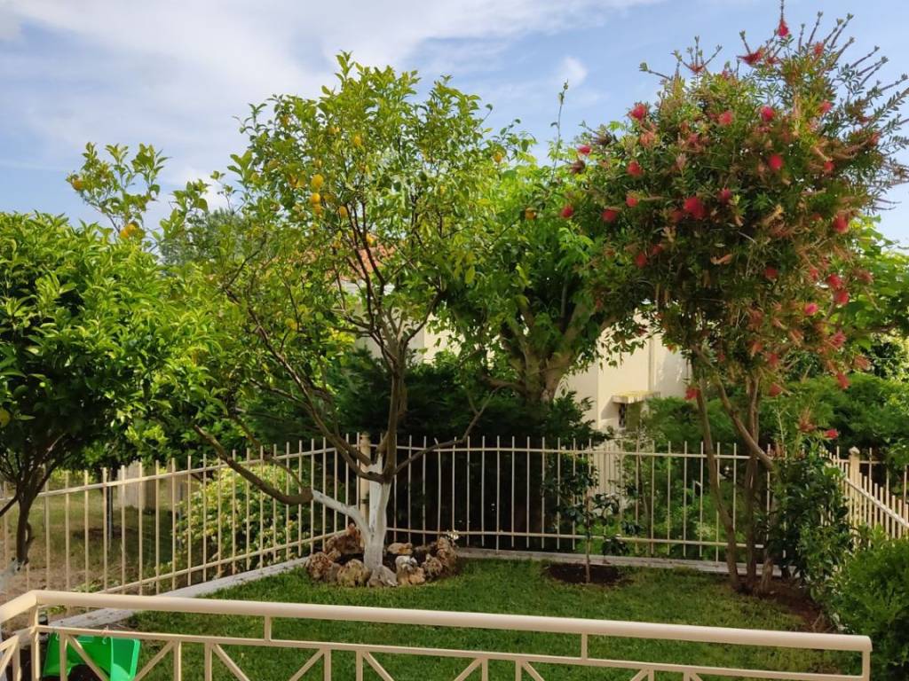 The maisonette is located 100m from the sea and overlooks the sea. It has a garden with lawn and trees, automatic watering and lighting, with private parking.