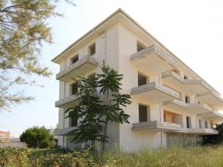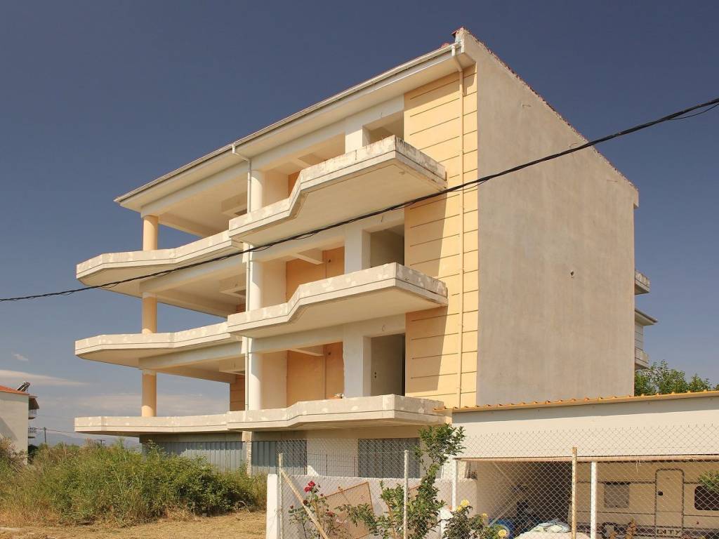 Ημιτελής (στο στάδιο των επιχρισμάτων) τριώροφη οικοδομή, που αποτελείται από ισόγεια πυλωτή εμβαδού 273,26 τ.μ., Α' όροφο εμβαδού 258,32 τ.μ. [διαχωρισμένο σε τέσσερα (4) διαμερίσματα], Β' όροφο εμβαδού 258,32 τ.μ. [διαχωρισμένο σε τέσσερα (4) διαμερίσματα] και Γ' όροφο εμβαδού 258,32 τ.μ. [διαχωρισμένο σε τέσσερα (4) διαμερίσματα], σε οικόπεδο έκτασης 775,00 τ.μ. Αριθμός υπνοδωματίων : 12 Βρίσκεται 190μ. από τη θάλασσα.