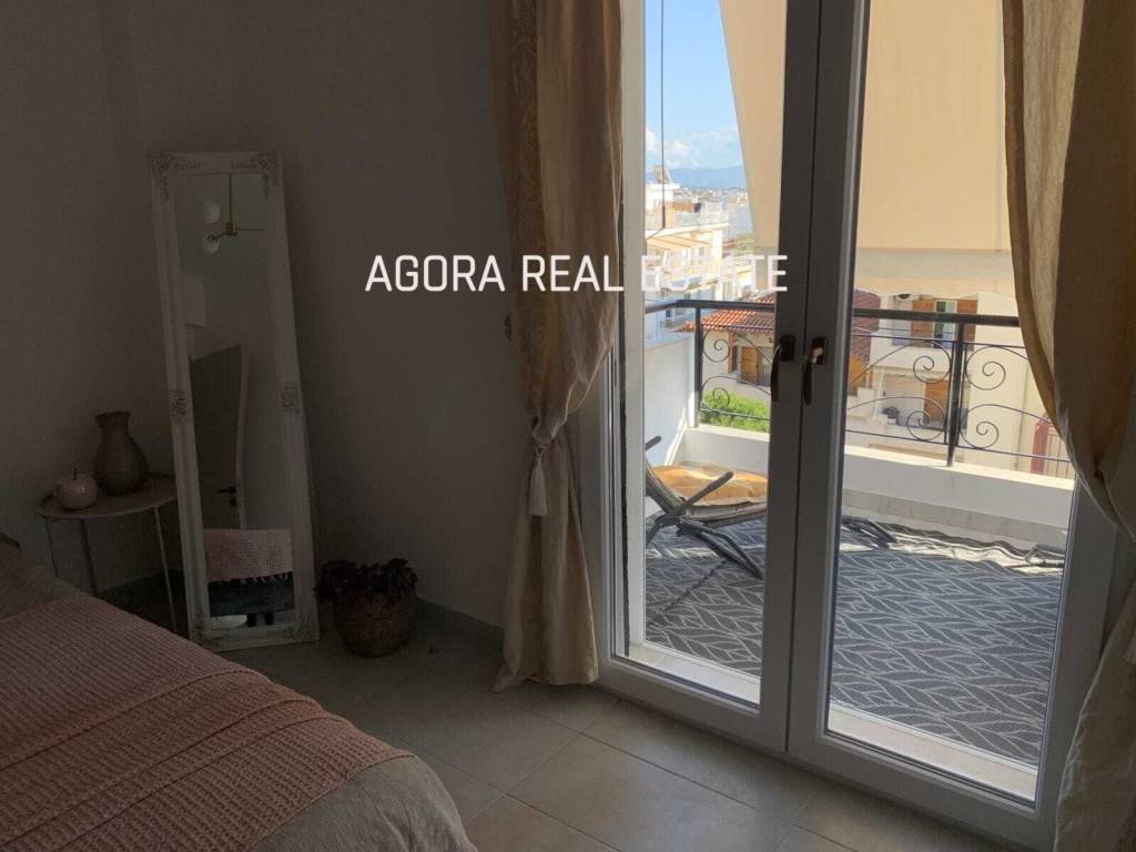 For sale is a 56m2 apartment in Loutraki Corinthia city . Renovated in 2025!! It consists of 1 bedroom, a kitchen-living room (living area 55 m2) and a 4 m2 storage room ,wc and 2 balconies . The apartment is located on the second floor of a two-story building. The premises are located in a quiet, cozy place, literally 100 m from the central square of Loutraki and 150 m from the beach. The design is in the romantic style of a "Parisian apartment", where retro and modern are mixed, and the view from the balconies provides an opportunity to admire the panorama of the roofs of the white resort town, the mountains with a monastery, a side view of the sea. Recently renovated with major thermal insulation of the walls, replacement of windows, doors, floors, communications. There is a working fireplace, a solar panel, as well as wiring for autonomous heating with the possibility of installation, sockets for electric heaters have also been made. The apartment is decorated with new furniture and all necessary household appliances with a store warranty. Price: 187 thousand euros.