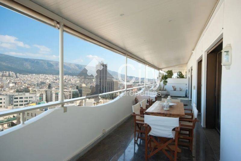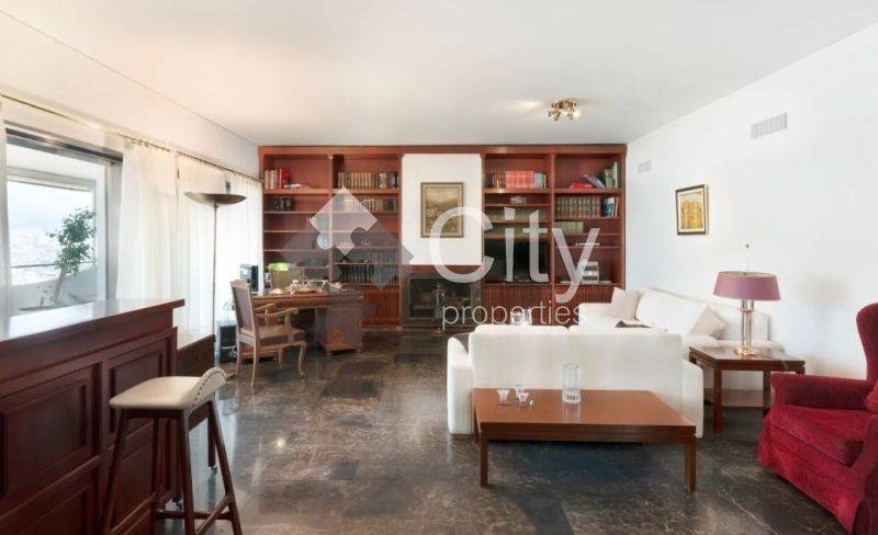 Furnished penthouse for rent in Ampelokipi, on the 12th floor, with a total area of ​​260 sq m. The apartment is a unique property for the center of Athens, with panoramic views from the veranda and private terrace, and is just 350 meters from the metro station.