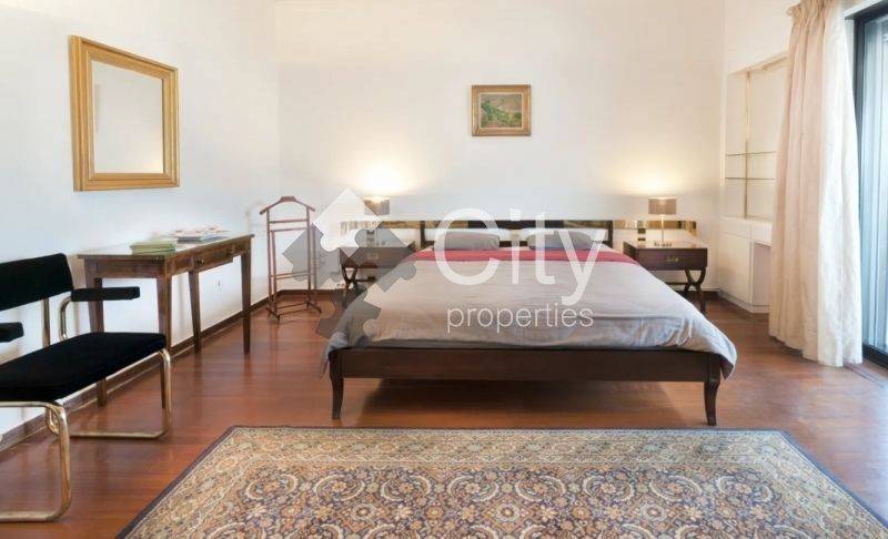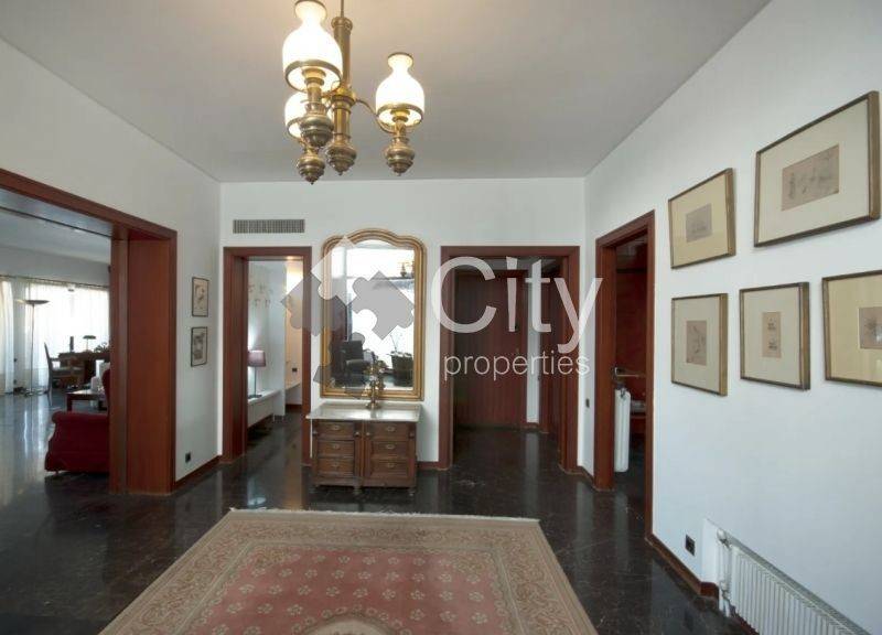It consists of 4 bedrooms, an elegantly designed living room with fireplace, a kitchen fully equipped with electrical appliances, and 3 bathrooms. The decoration is luxurious, with expensive furniture and works of art. The building was built in 1972 and has a concierge — a rare privilege for the area — as well as an elevator.